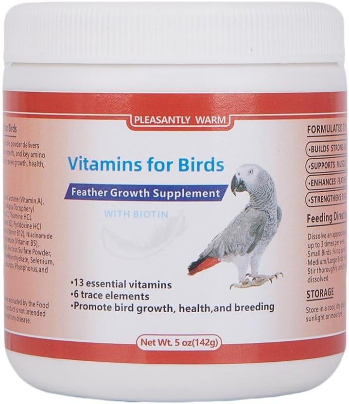 Comprehensive Nutritional Support: Combines vital vitamins such as Vitamin A for maintaining eye health, D3 for bone reinforcement, and E for antioxidant defense. Includes B – complex vitamins (B1, B2, B6, B12) to aid in metabolism and keep avian plumage in top condition, making it suitable for regular nutritional enhancement.
