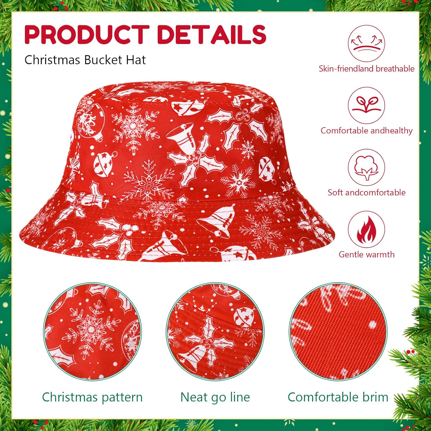 Blosssound 4 pcs Christmas Bucket Hat for Women Men Funny Fishing Hat Beach Cute Fisherman Cap Holiday Party Outdoor