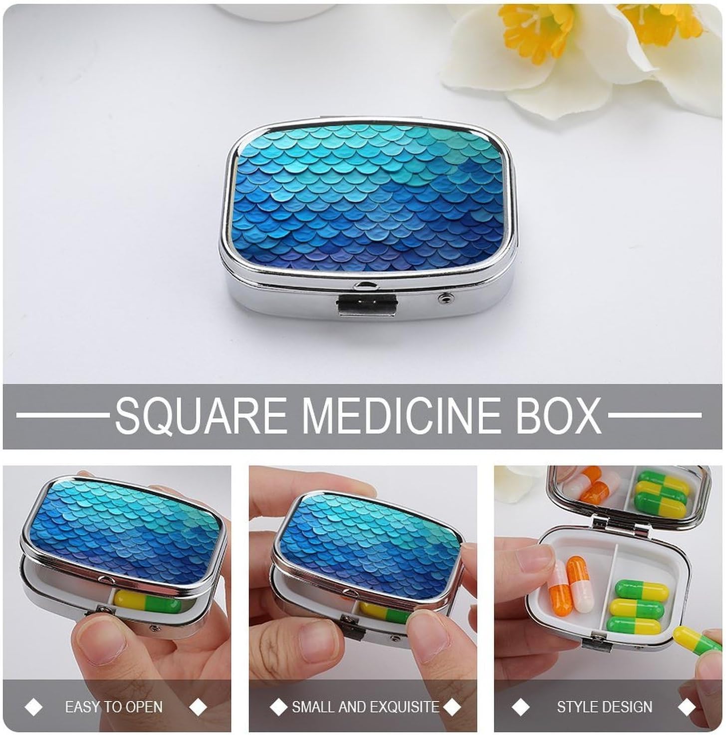 Blue Mermaid Fish Scale Pill Organizer Travel, Portable Pill Case, Airtight Medicine Box, Small Pill Container for Pocket Purse Medicine Organizer, Daily Pill Box to Hold Vitamins