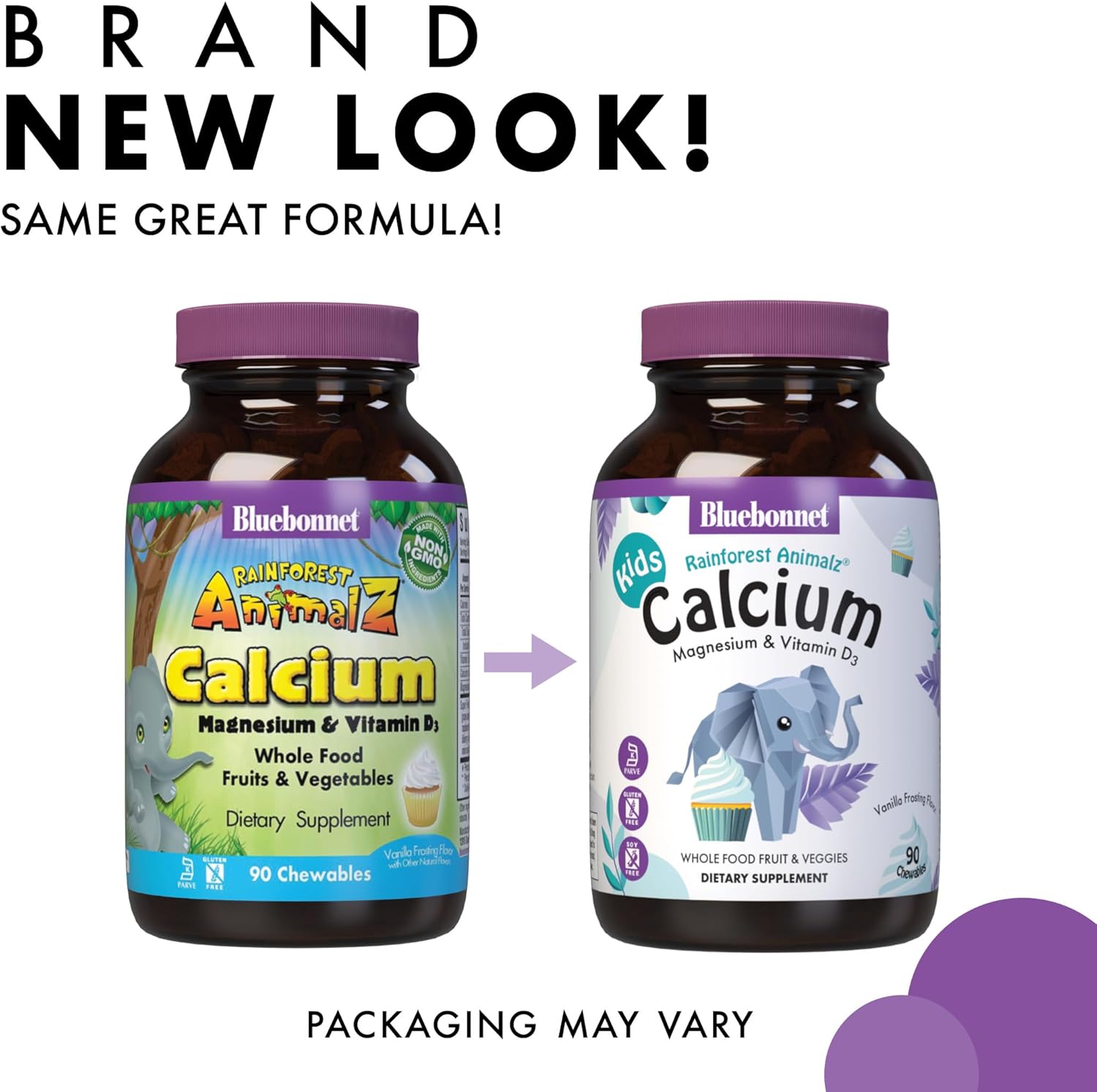 BlueBonnet Super Earth Rainforest Animalz Calcium Magnesium And Vitamin D3 Chews, Natural Vanilla Frosting, White, 90 Count
