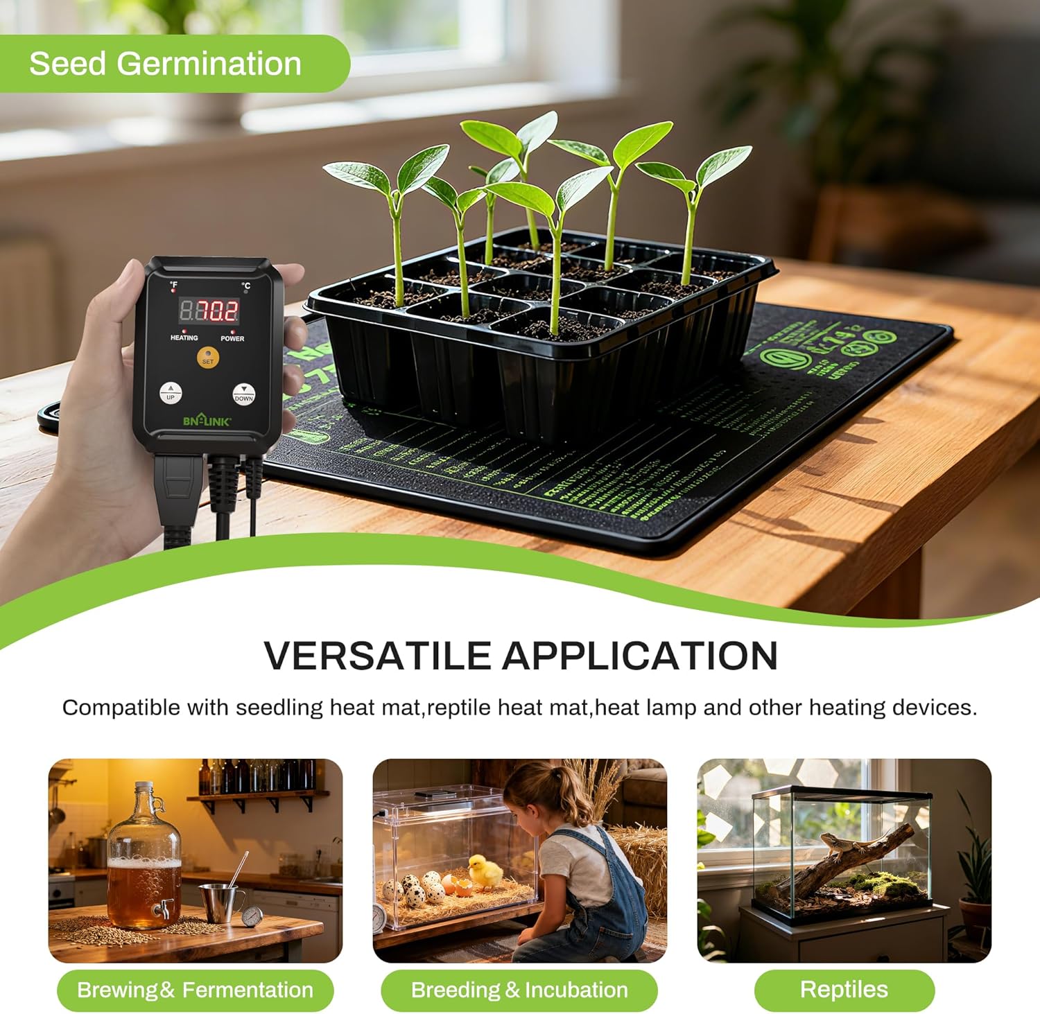BN-LINK Digital Heat Mat Thermostat Controller for Seed Germination, Reptiles and Brewing Breeding Incubation Greenhouse, 40-108°F, 8.3A 1000W ETL Listed