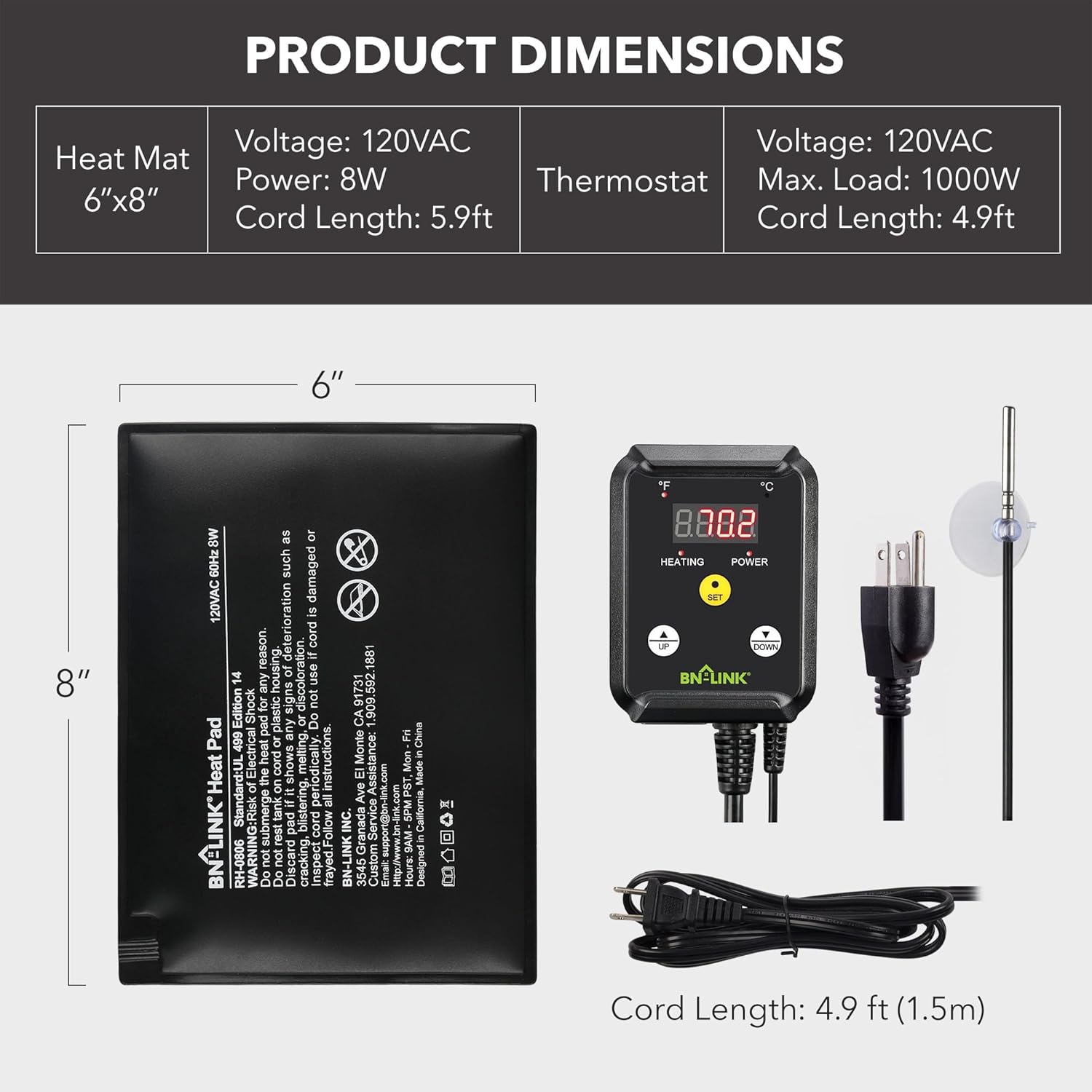BN-LINK Durable Reptile Heating Pad 6″ X 8″ with Digital Thermostat Under Tank Heater Terrarium Warmer Combo Set for Turtles, Lizards, Frogs, and Other Reptiles