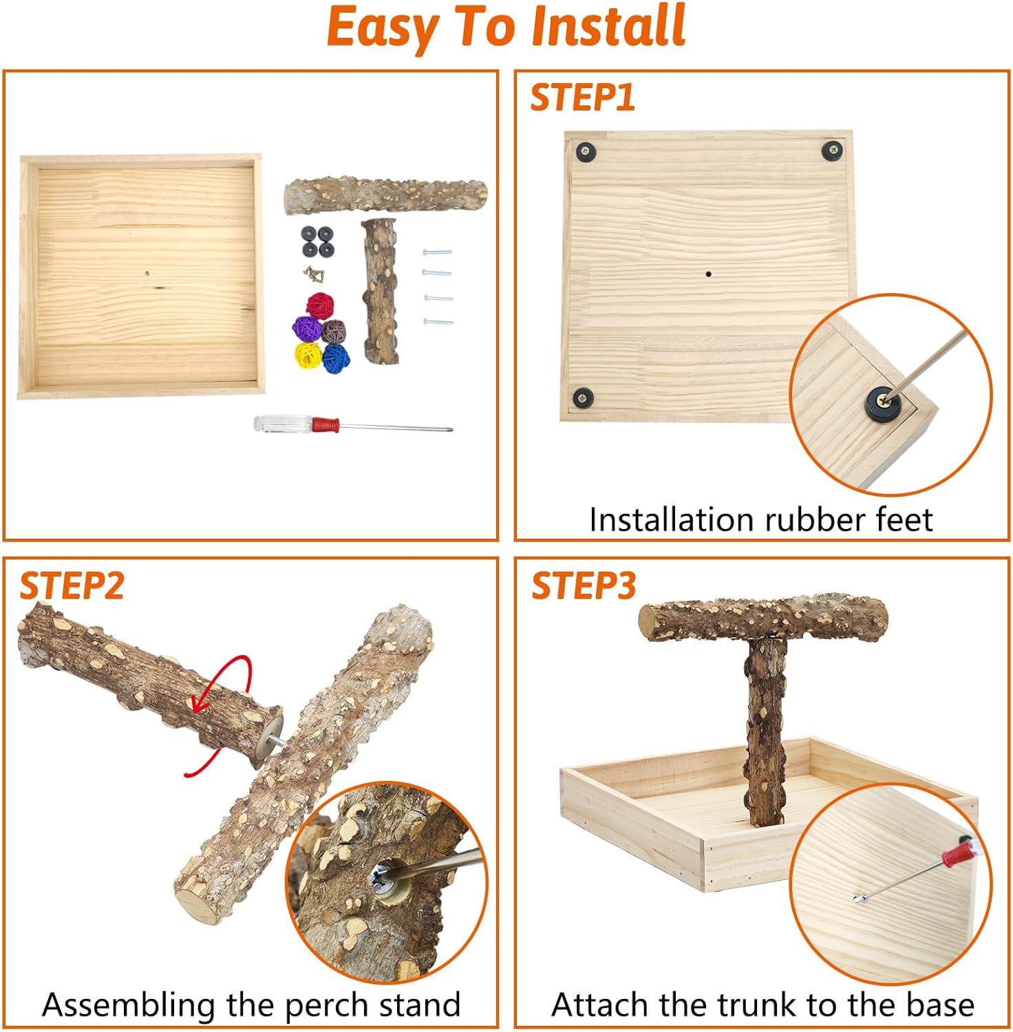 Easy To Install & Clean: Quick assembly with mini hex key connects perch to tray. Effortless disassembly enables easy cleaning. Bird play stand perfect for indoor areas, keeping your space tidy while enjoying time with your feathered friend