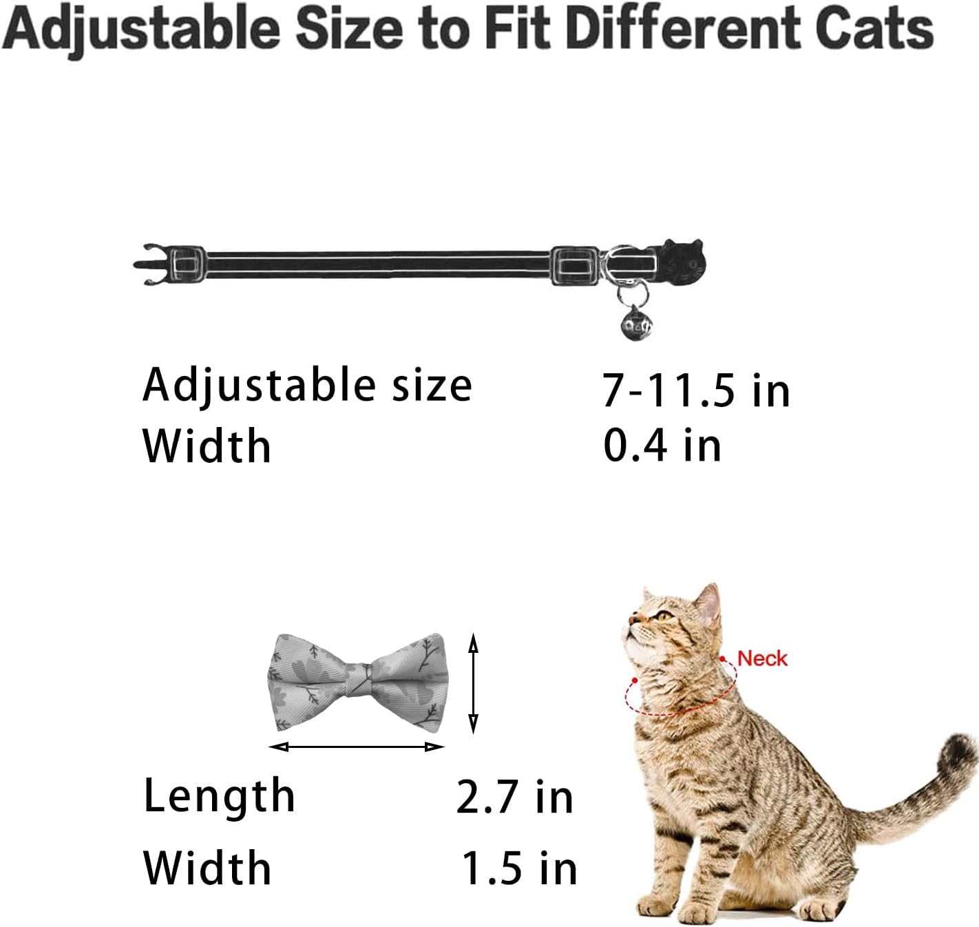【Size】: Neck 7″-11.5″, Width 2/5″. The Bowtie Size: 2.7″ x 1.5″. Please measure your cat’s neck size before purchase.