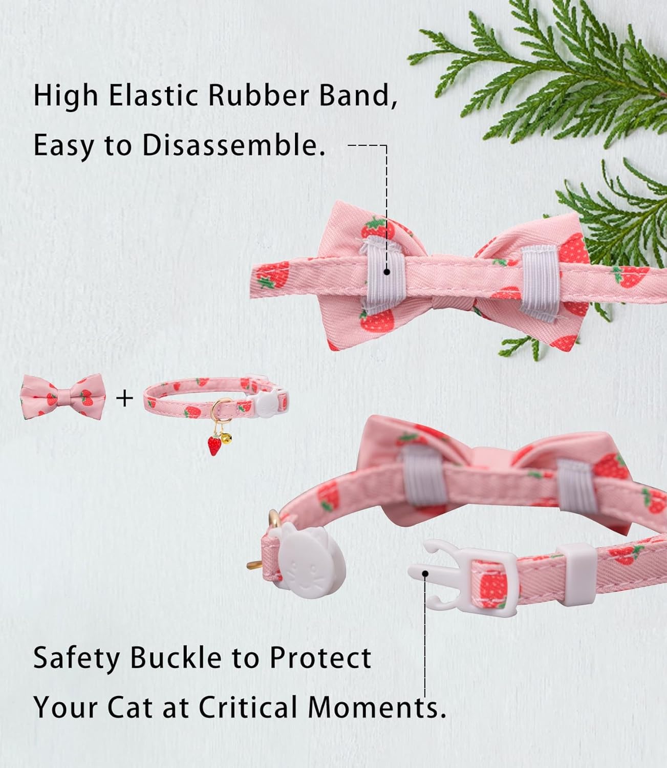 8 reviews for Breakaway Cat Collar with Bow Tie,2 Pack Adjustable Kitten Collars with Removeable Bowtie and Bells for Girl Boy Cats. (Pink and White)