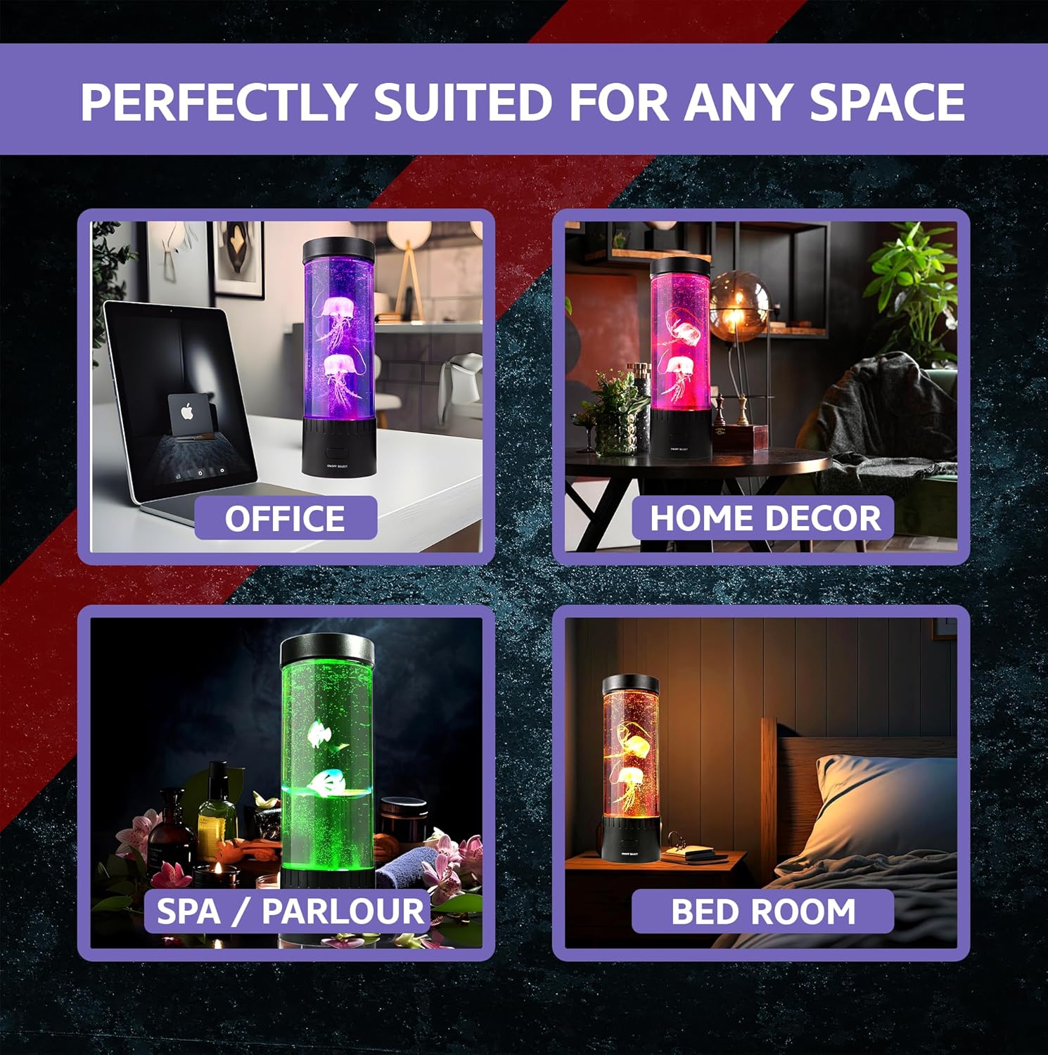 Cool RGB Color Changing Lamp: Change the color to suit your mood with a click of a button. Our jellyfish light offers 4 modes, helping to create a harmonious ambiance. Watch the magical mood light as it cascades through the water, creating a mesmerizing and calming effect.