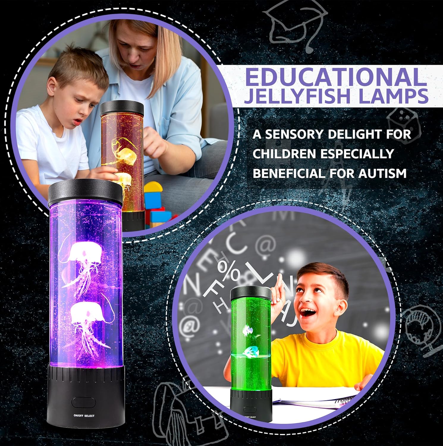 Sensory Lamp & Stress Reliever: Relax, unwind, and ignite your imagination with this one-of-a-kind fish Lamp! You’ll be able to see the beautiful, dancing jellyfishes and forget about those worries you have! This sensory light, designed specifically for people with autism & ADHD, helps relieve stress and anxiety.