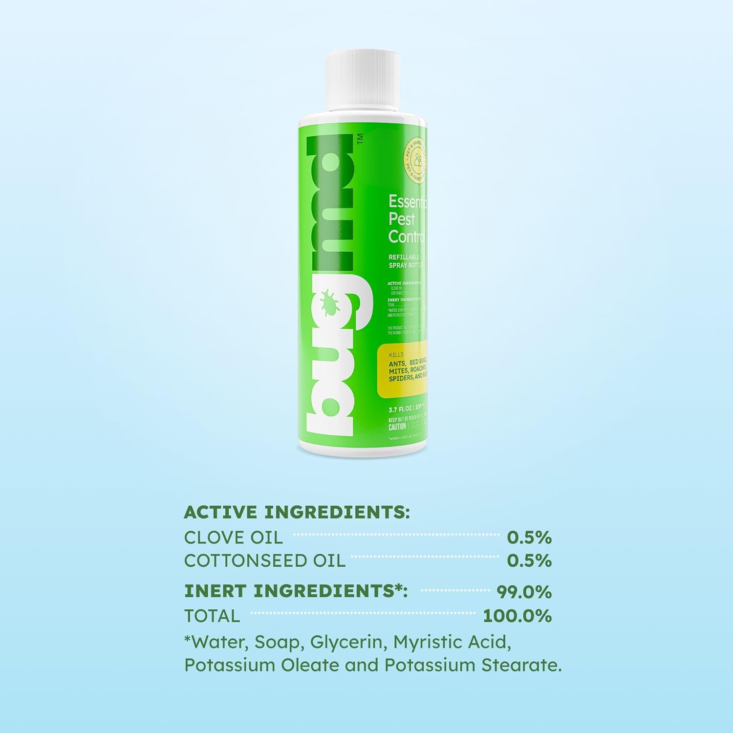 Simple to Use: One small concentrate bottle is all you need to create a 32 oz bottle of pest control spray that can easily be sprayed in and out of the home, including in bathrooms, bedrooms, kitchens, baseboards, sheds, cabinets, gardens, and outdoor areas. Simply add your full Essential Pest concentrate to 27 oz of cold water into a BUGMD Essential “Forever” Spray bottle, shake, and spray.