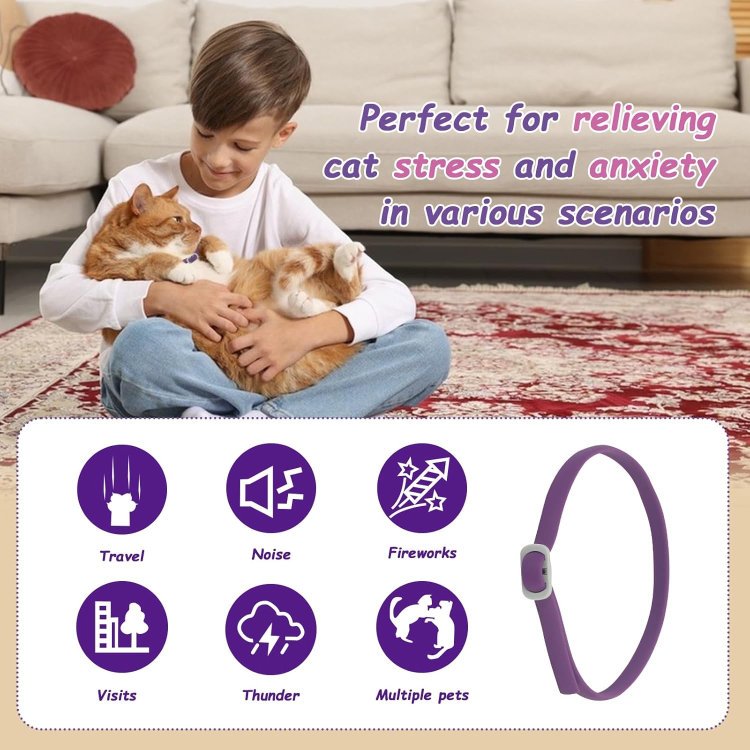 Fast-Acting Relief in 1 Hour – This cat calming collar starts working within just 1 hour, delivering a soothing effect that helps relax your cat, gently correct unwanted behaviors, and turn them into a loving, snuggly companion