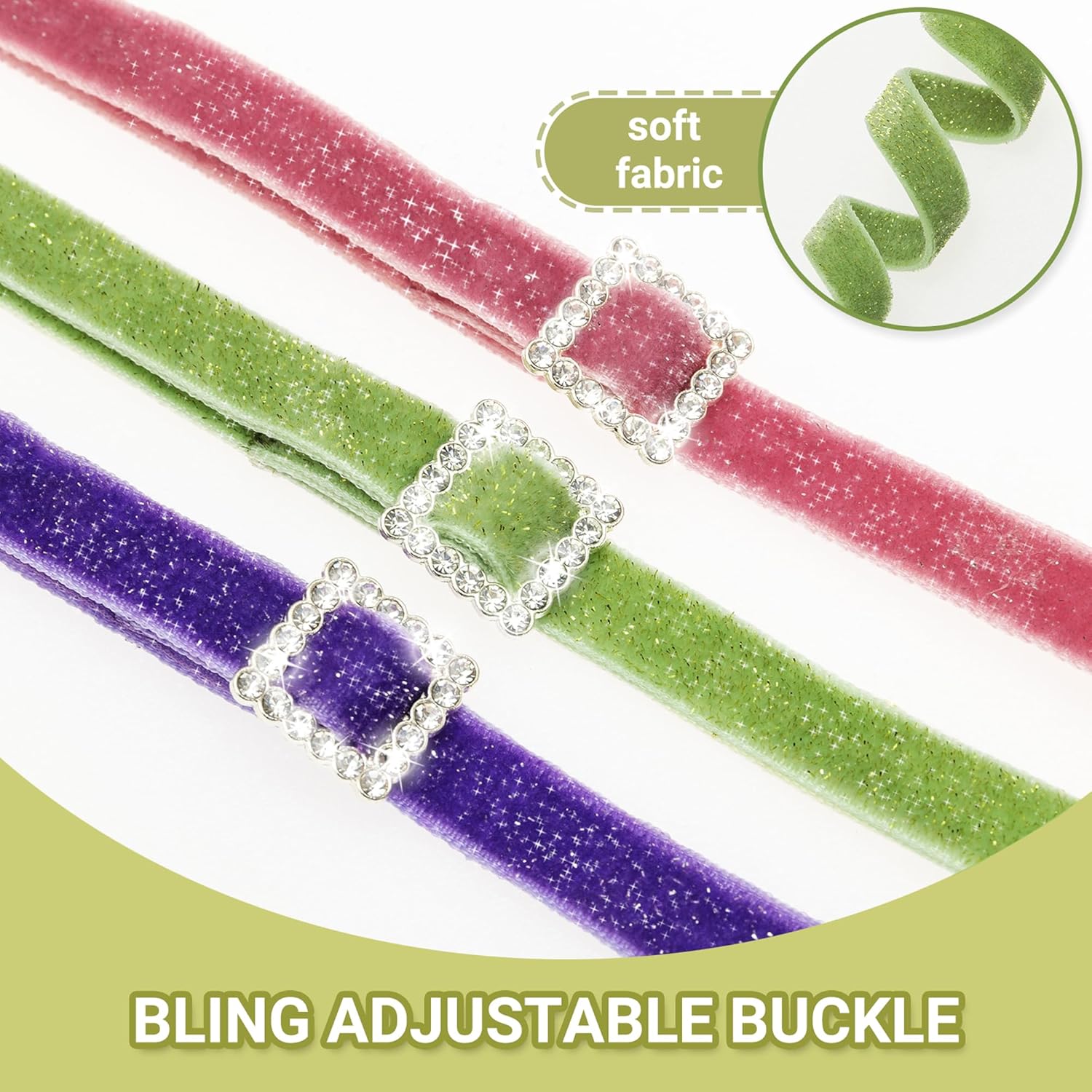 Multi-Occasion Use – 3 pack cat collar set is available in different colors, namely purple, green, and pink, to meet the wearing needs of different occasions. Not only a nice choice for daily wear, but also suitable for wearing on special festivals such as Christmas, Valentine’s Day, Halloween, attending weddings, traveling for photoshoots and more.