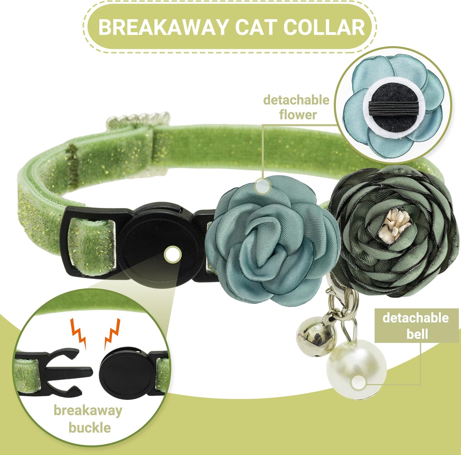 Stylish Design – Each cat collar comes with 2 pcs different styles of flowers, making your cat look more charming. In addition, the square adjustment buckle is inlaid with sparkling rhinestones, which dazzles in the sun and makes your pet the center of attention.