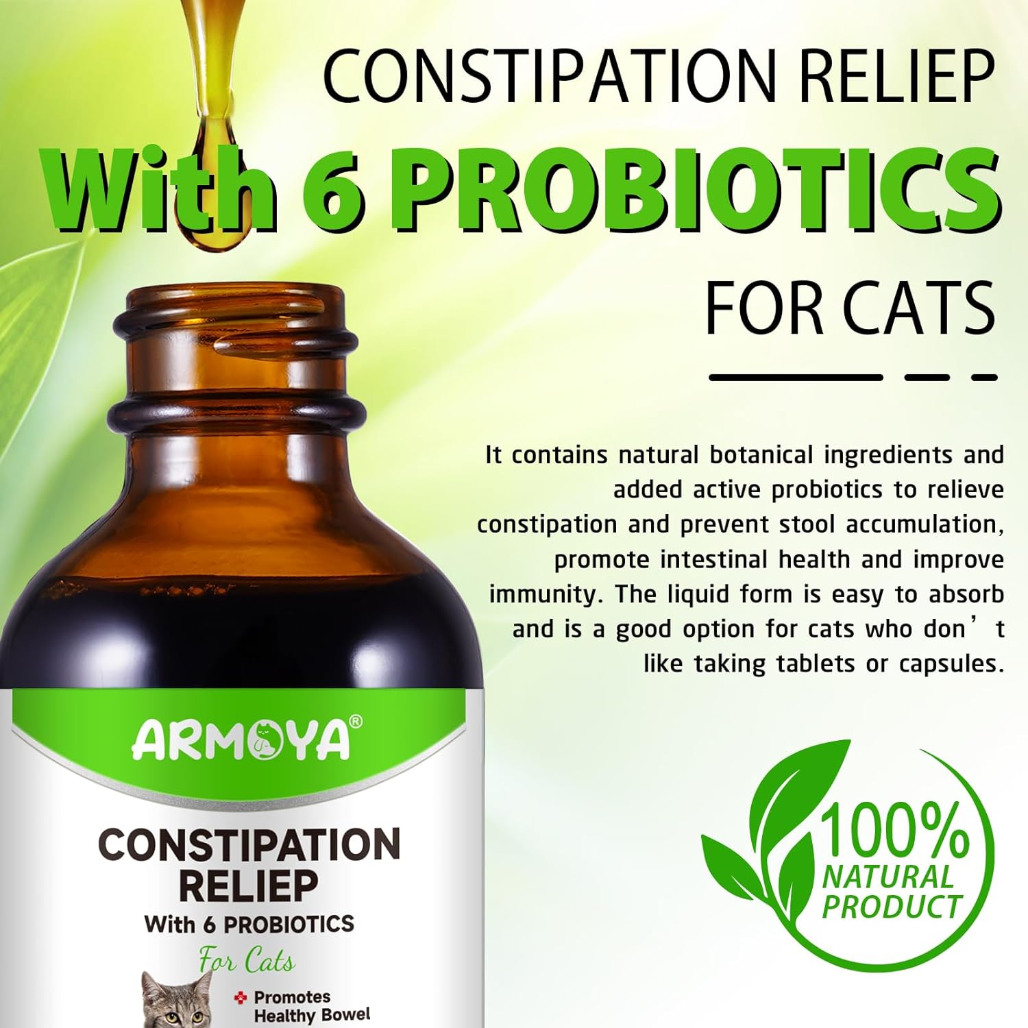 Cat Constipation Relief, Cat Laxative Constipation Relief, 100% Natural Laxative with 6 Probiotics Stool Softener, Promotes Digestive Health – 2 fl oz