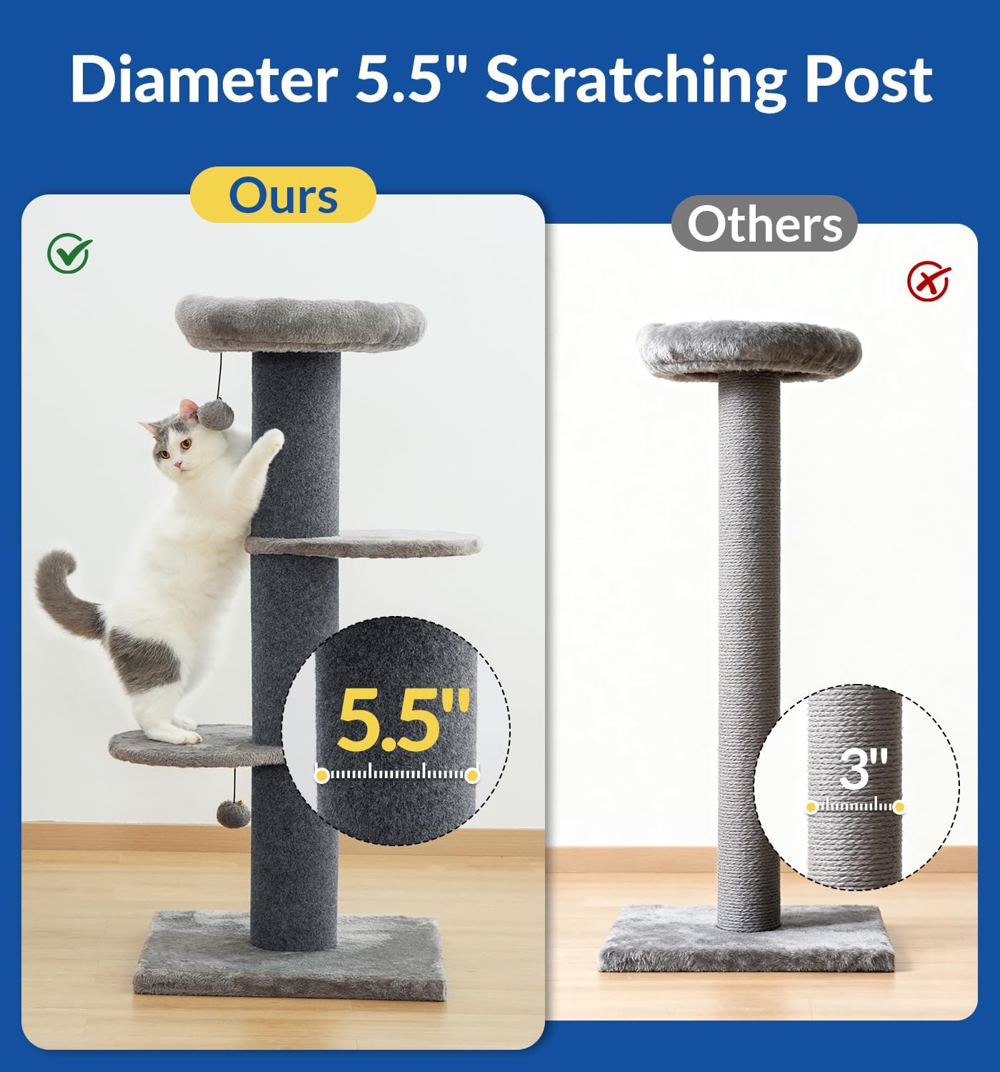 With COFY BED/PERCH: The top platform is surrounded by comfortable materials to form a cozy bed, allowing cats to play and relieve stress while also serving as a cat bed.
