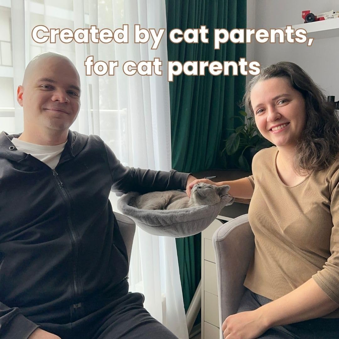 [Two Washable Covers with Removable Design]: No more messy cat beds. Our desk cat hammock includes two removable cat bed covers for quick swaps. Both covers are machine-washable for easy cleaning. Swap instantly to keep your modern cat bed fresh, hygienic and cozy every day.