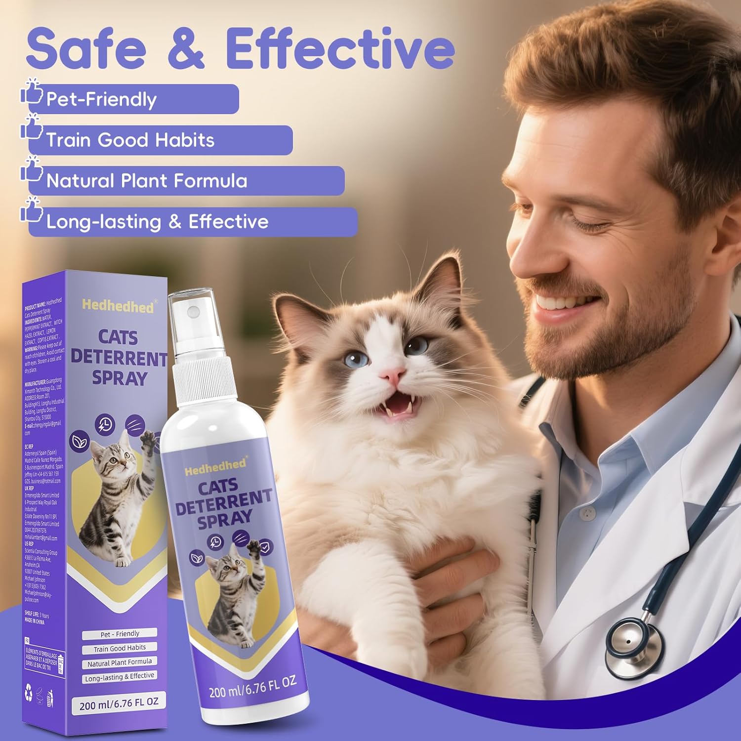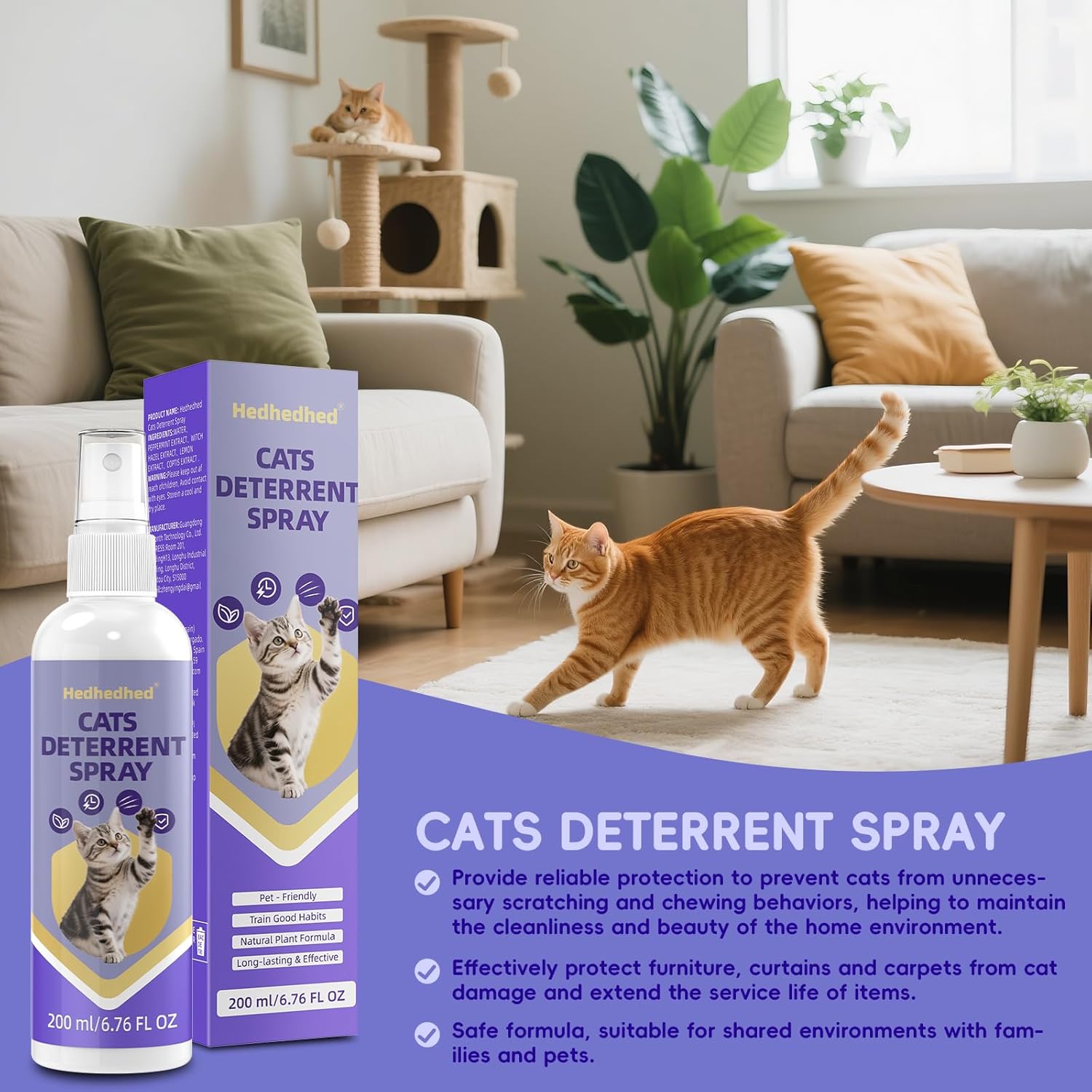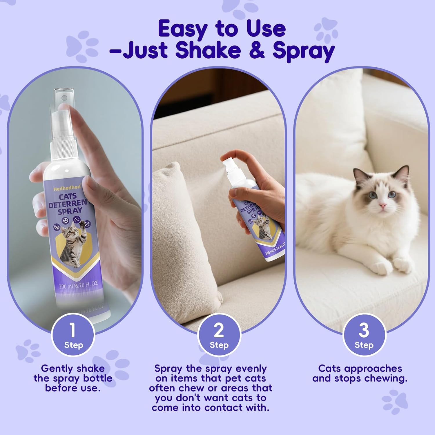 SAFE & NATURAL INGREDIENTS:Formulated with powerful, natural extracts like Peppermint, Witch Hazel, and Lemon, Hedhedhed cat deterrent spray emits a fresh scent that cats naturally dislike. It’s completely free from harsh chemicals, safe for your pets, children, and the environment, providing you with a peace-of-mind solution to protect your home.