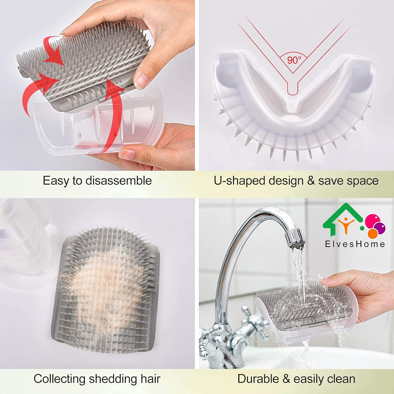 Suit For All Sorts Of Corners & Flat Wall — The cat self groomer is designed for corners, sofa legs, table legs, chair legs, etc. Upgraded design aslo can be install on the flat wall.Simple Installation — Screws or tapes can be used to easily install in the flat wall or corner. Firm and durable, not easily damaged. Suitable for dogs and cats, it is the best scratcher toy for pets. Let kittens and puppies entertain themselves and increase the fun in life.Detachable Design & Quickly Clean — Press both sides to disassemble, and then wash it with water directly. Cleaning is more quickly and conveniently.Provide Comforting Massage — The rubber bristles have good hardness and good toughness, so they are not easy to break. The round head bristles give pets a skin-friendly massage.Say Goodbye To Frequent Household Cleaning — Our cat brushes can effectively collect loose hairs to make your home cleaner and you don’t have to vacuum around so often.