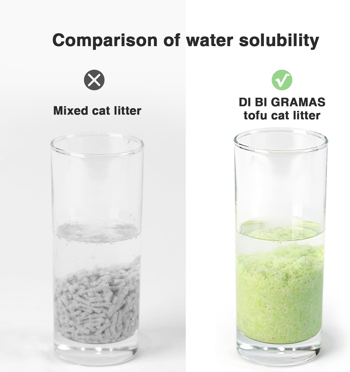 100% Pure natural tofu litter raw materials, can be completely dissolved after 30s, do not worry about clogging the toilet bowl.