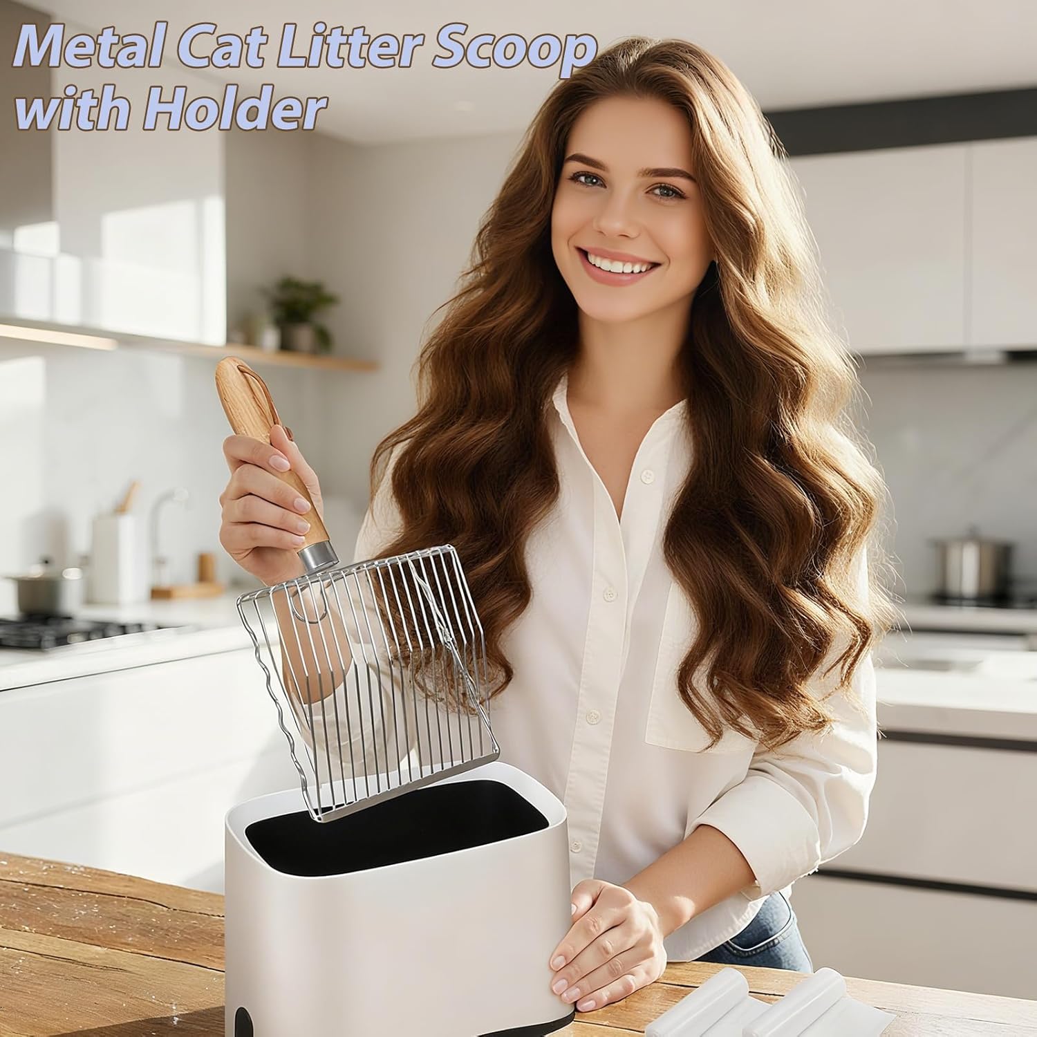 【Stainless Steel Cat Litter Scoop】Our metal cat litter scoop is made of high-quality stainless steel, which is not easy to rust. The structure of the metal cat litter shovel ensures that it will not easily break or bend, making it more durable than plastic cat litter shovels, and easy to clean. Our cat litter scooper with holder has fashionable and exquisite features, making it more worry free to use.