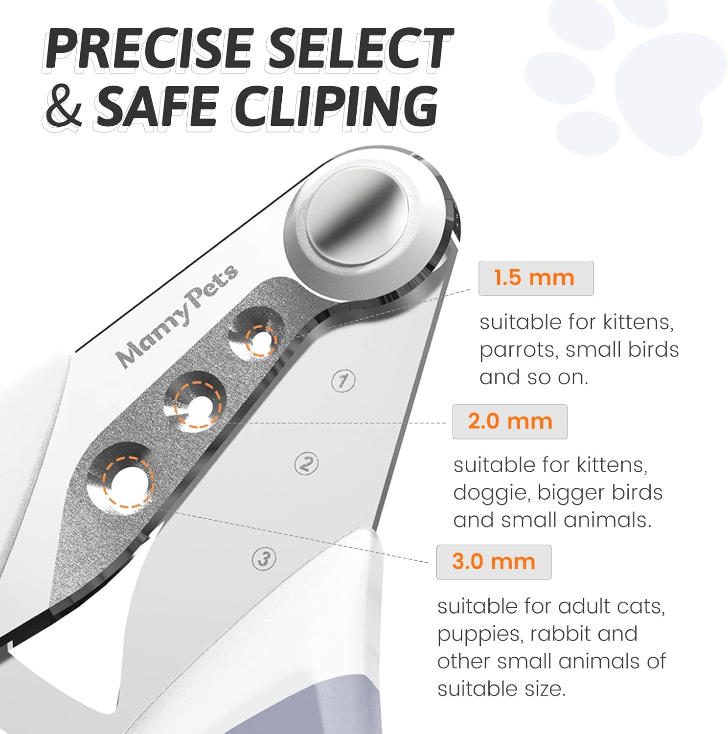 The clipper works great with my cat. and I can use different sizes of holes to fit her nails. I like the idea of this productï¼and very easy to use and protect your pet from getting hurt