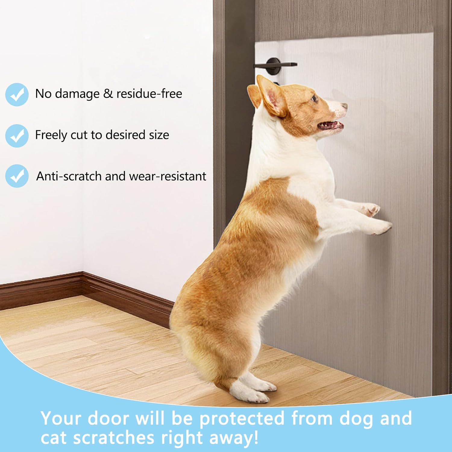 MULTI-PURPOSE: Door protector tape for various scenarios, suitable for sofas, carpets, corners, doors, and other furniture. When your pup grabs or scratches your door, door scratch shield can through to naturally train cats or dogs to stop scratching by eliminating the sensation of claw sharpening, door protector also great for protecting your door from pets scratching, friendly to your cute cats!