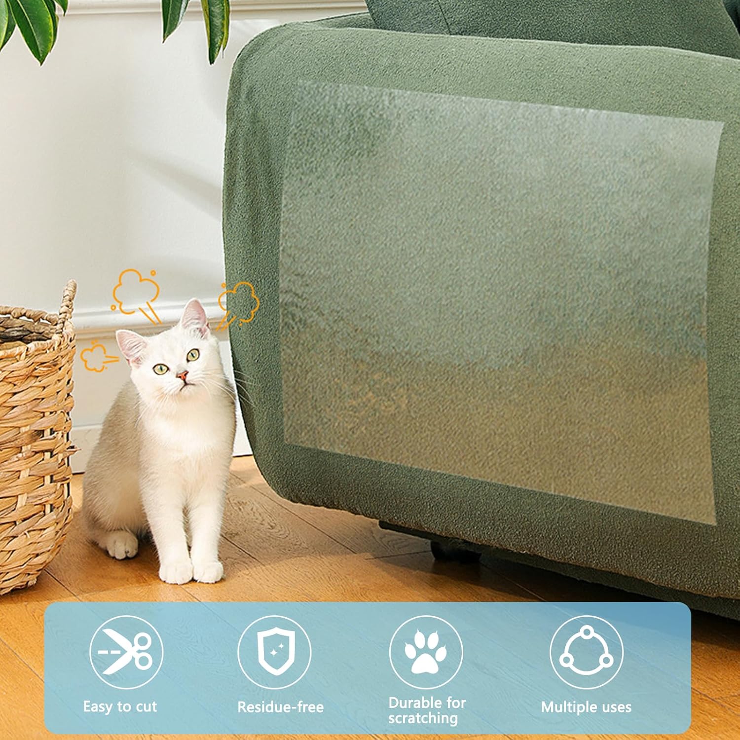 TRANSPARENT DESIGN: The cat furniture protector is provides invisible protection to prevent scratches from cats and dogs. The furniture protectors from cats scratch is easy to clean and does not have dust, our cat scratch protectors are designed to make your life more comfortable and beautiful. They will protect your sofa from unsightly holes in your furniture upholstery without spoiling the overall ambience of your interior.
