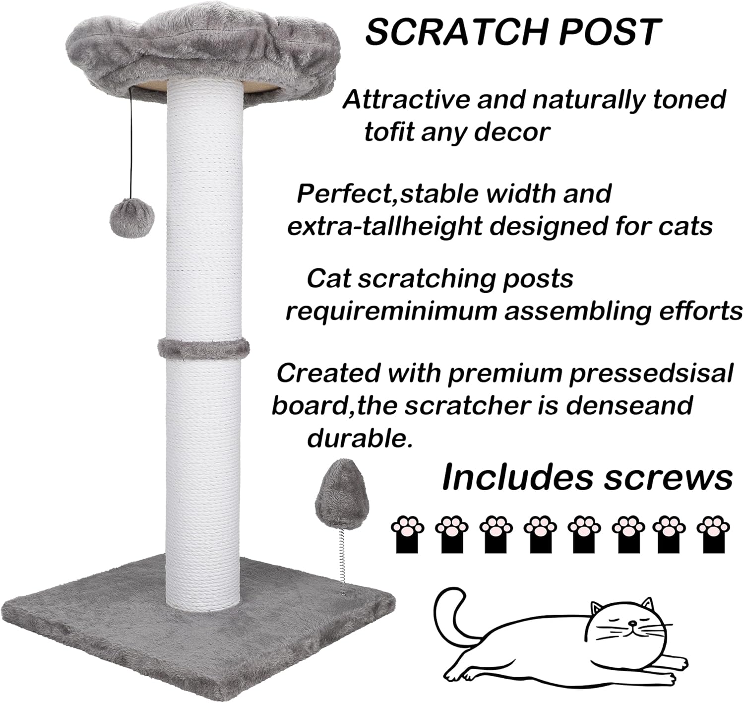 Cat Scratching Post 30 Inches Heavy Duty and Thicker Cat Scratching Post Sisal Rope with Hanging Ball and Flower Cat Perch for Indoor Cats and Adult(Grey)