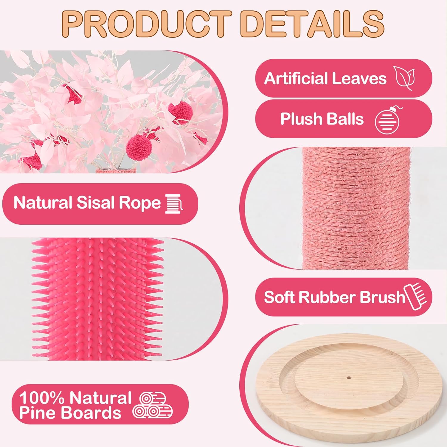 6 reviews for Cat Scratching Post for Indoor Cats Adults, 45 Inch Tall Cat Scratcher with Sisal Rope, Large Cats Scratching Posts with Hanging Ball for Kittens and Medium Large Cats (Pink Color)