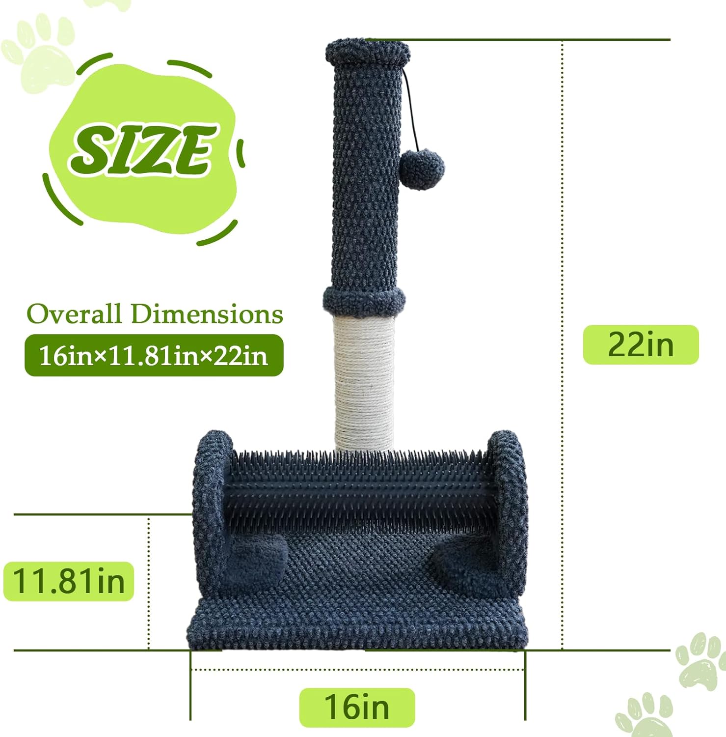 Give your feline friend the ultimate scratching and grooming experience with our 22-inch Cat Scratching Post with Cat Hair Brush & Toy Ball. Made with premium thick pet fabric that is extra durable and scratch-resistant, this cat scratcher is built to last. The natural sisal-wrapped post provides the perfect surface for cats to scratch, stretch, and exercise their claws, while the built-in cat hair brush doubles as a self-grooming tool that helps reduce shedding and keeps your cat’s coat clean and healthy. An interactive plush ball toy adds fun and stimulation, encouraging your cat to stay active and entertained. With its sturdy base and compact design, this scratch tower is stable and space-saving, making it the perfect addition to any indoor cat household. Whether you have a playful kitten or an adult cat, this multifunctional cat scratch post offers scratching, grooming, and playtime all in one. Keep your furniture safe while keeping your cat happy and healthy!