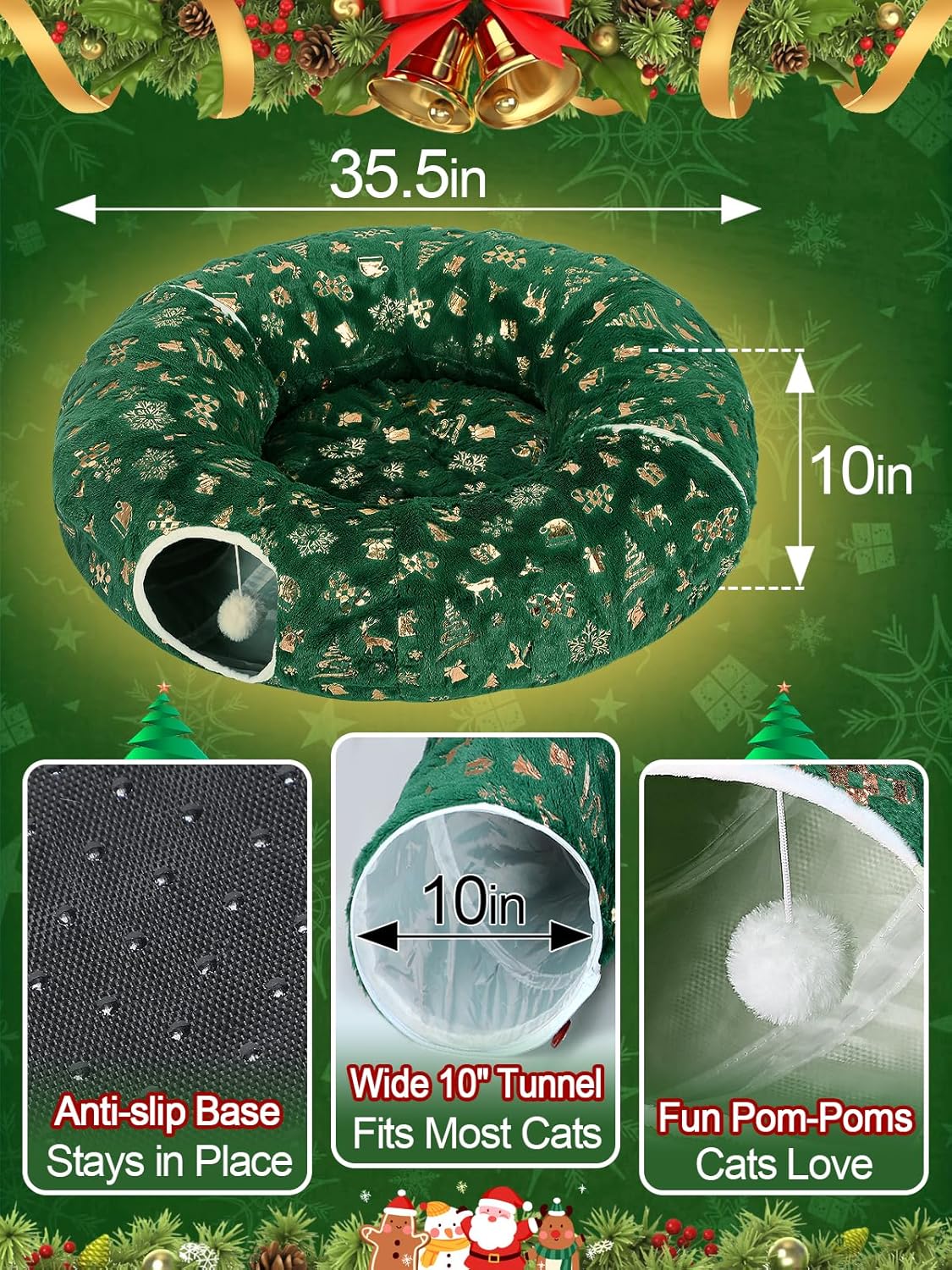 Perfect Holiday Gift for Cat Owners: Measures 35.5″ in diameter and 10″ high, giving cats plenty of room to play and explore. Hanging pom-poms at the entrance add extra fun, making it a perfect Christmas gift for cats or cat lovers