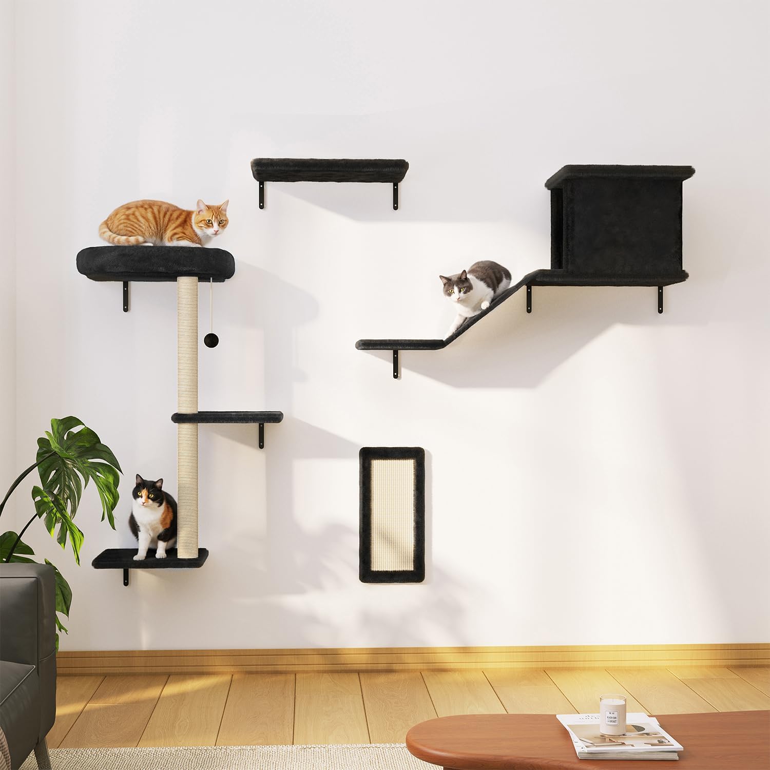 8 reviews for Cat Wall Shelves, Set of 5 Cat Wall Furniture Includes Scratching Post with 3 Steps, Condo, Bridge, Platform and Scratcher Board for Kittens
