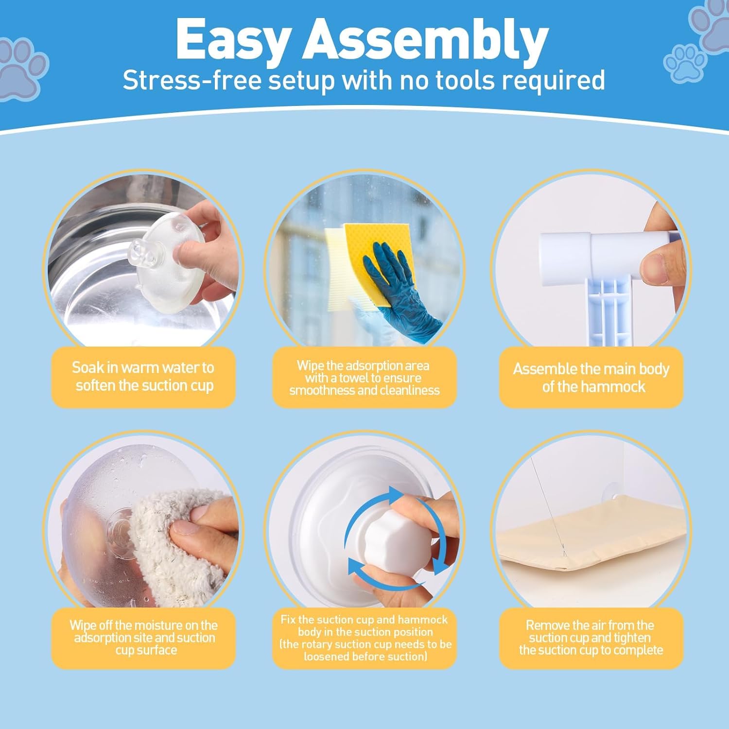 Sturdy and Strong Suction: Equipped with powerful suction cups that firmly adhere to glass, capable of bearing a weight of up to 20kg. It provides cats with a stable sense of security, allowing them to rest at ease without wobbling.(If you encounter any installation issues, you can refer to the installation videos in the store.)