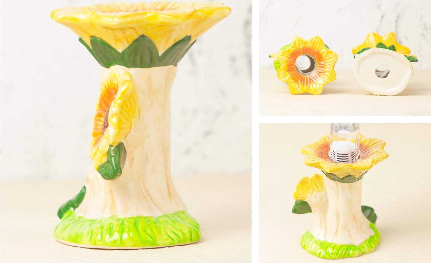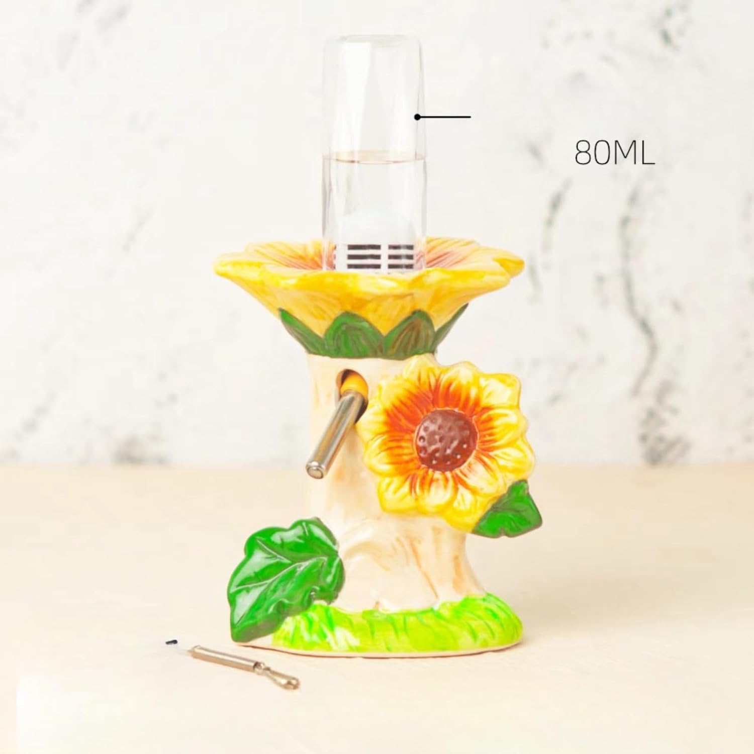 Ceramic Hamster Water Bottle with Stand & 80ML Water Bottle, Water Dispenser for Small Animal, Water Bottle Holder Auto Water Feeding Bottles for Syrian Dwarf Hamster Mice Gerbil (Sunflower Shape)