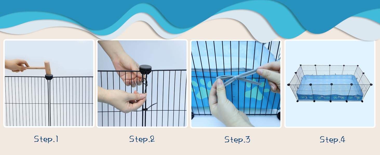 Pet playpen is simple to assemble, MUST ensure that each grid is securely attached to the interior of the connector. C&C cages are customizable, allowing you to increase the living space for your guinea pigs by adding more grids.