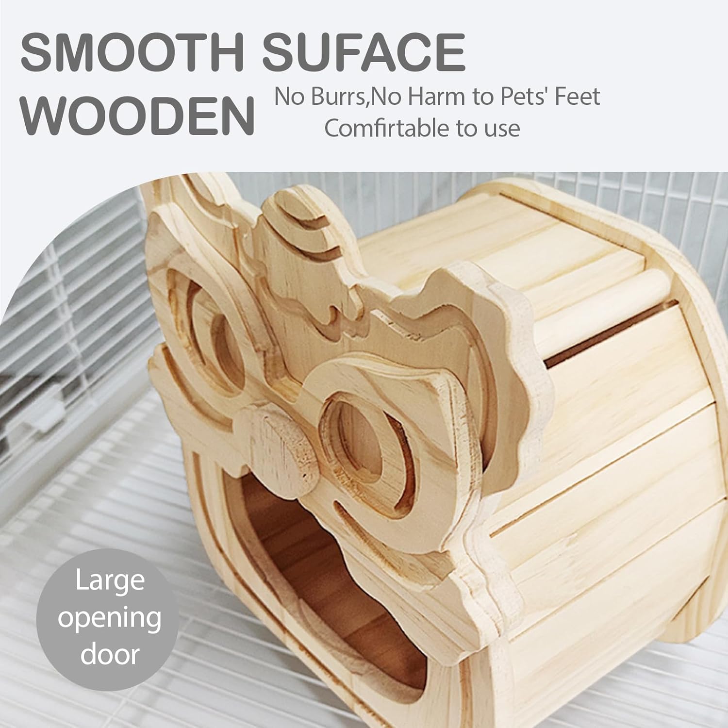 Chinchilla House Guinea Pig Wooden Hideout, Small Animal Nature Wood House Habitats Decor for Hamster,Guinea Pig,Chinchilla etc (Large, Lion)