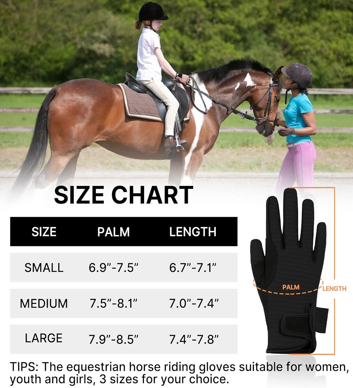 ChinFun Women’s Horse Riding Gloves Stretchable Equestrian Gloves Breathable Horseback Lady Youth Girls Outdoor Cycling