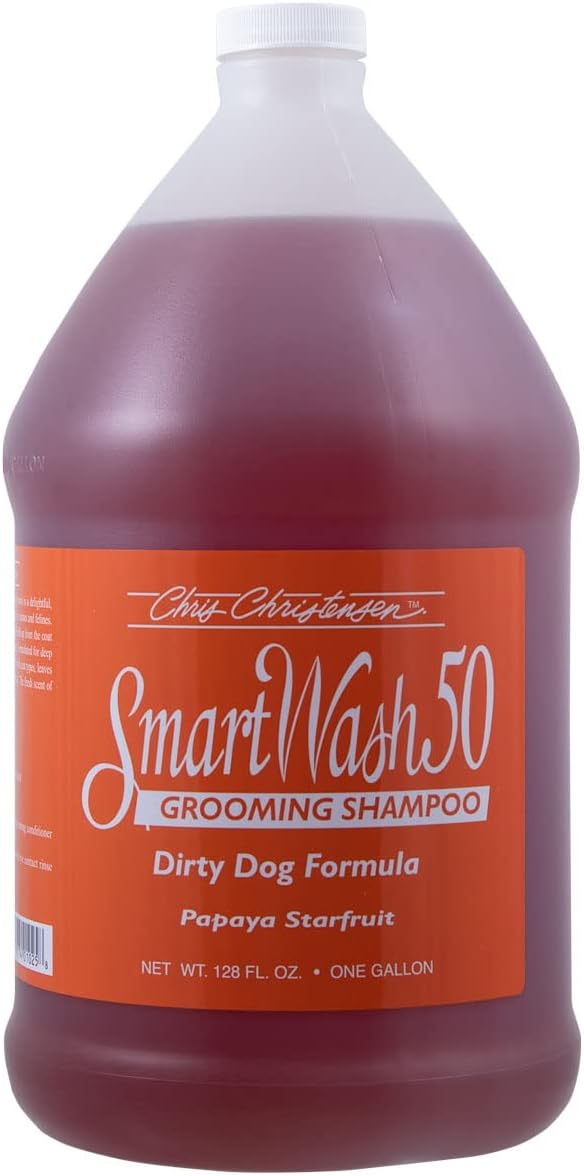 2 reviews for Chris Christensen Gallon Liquid and Gallon Pump Dispenser Bundle- SmartWash50 Papaya Starfruit Ultra Concentrated Dog Shampoo, Suitable for all Coats + Gallon Pump Dispenser, Easily Dispenses, No Mess