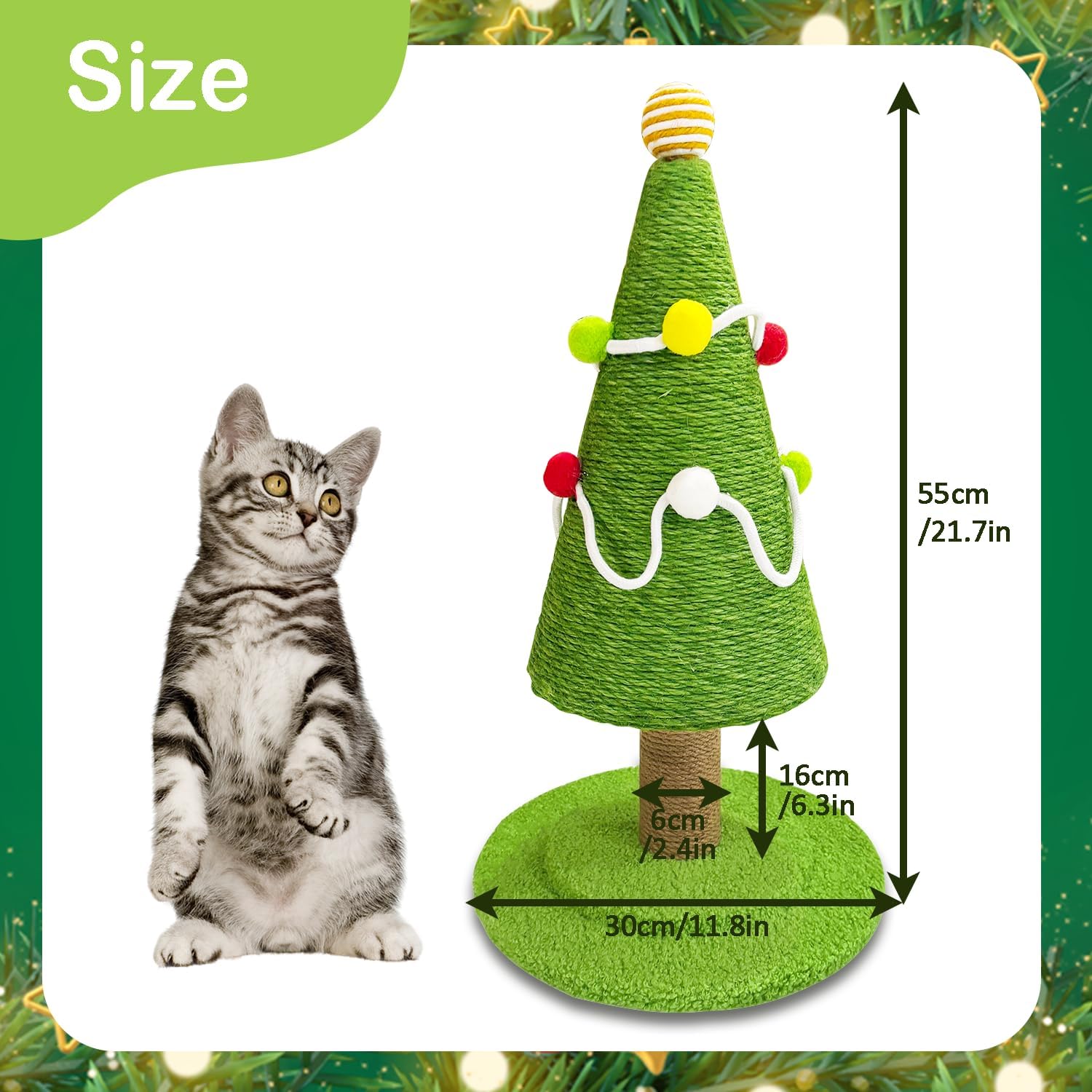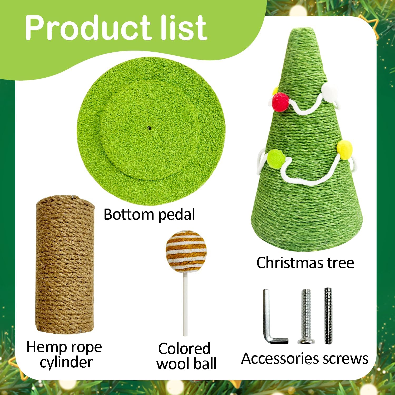 Easy to Assemble and Great Service: All tools are included and the Christmas tree Cat Scratching Post post can be assembled in minutes without any hassle. If you need any help, just feel free to contact us and we will get back to you immediately.