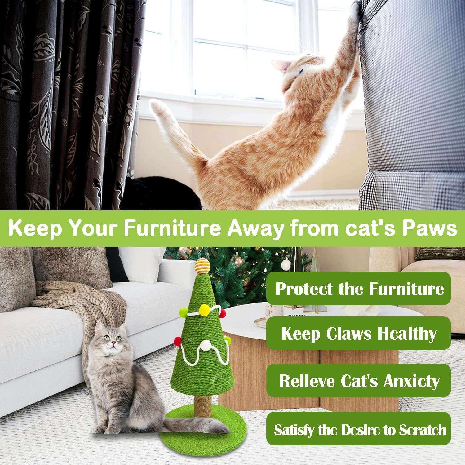 Wonderful Gifts: This tree shape cat scratching posts is an ideal Christmas gift for you and your beloved cats, since it is not only your furniture savior but also a perfect recreational toy for cats. At the same time, it is also a Christmas decoration with a festive atmosphere.