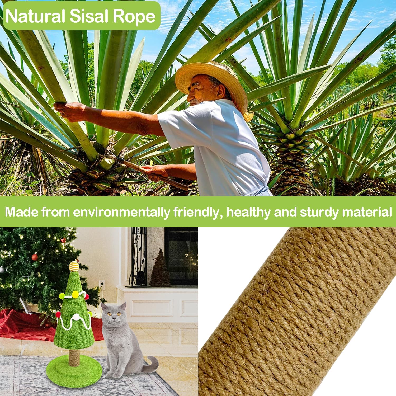 Natural Sisal Rope Cat Tower to Satisfy Cats Claw Instincts, Christmas Decor Sisal Rope Cat Toys for Kitty and Adult Cats
