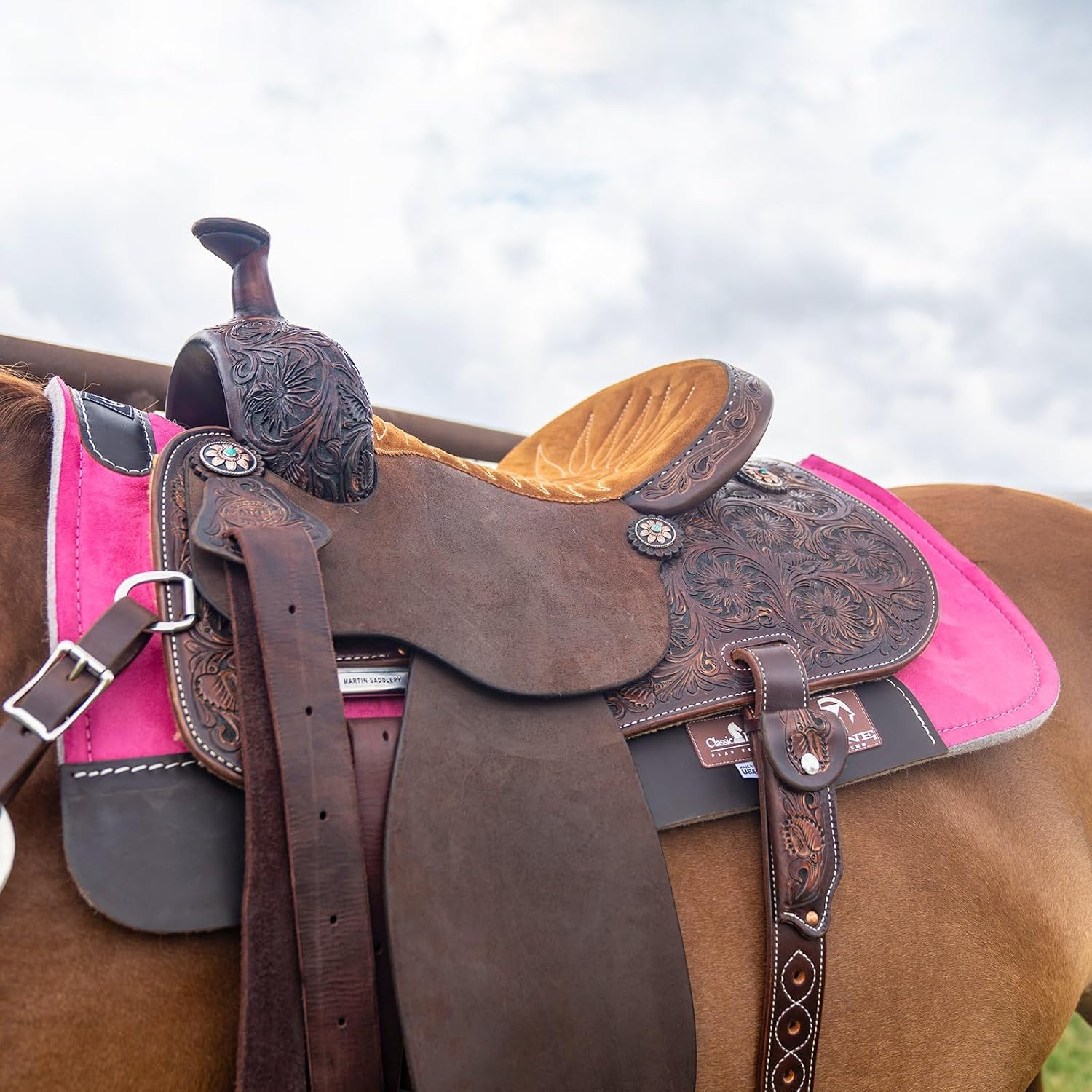 Available in 31″x32″, 30″x30″, and 28″x30″, it’s sized to fit a wide range of saddles and riding disciplines. This pad is available in grey, pink, turquoise, and black colors for a sleek look.