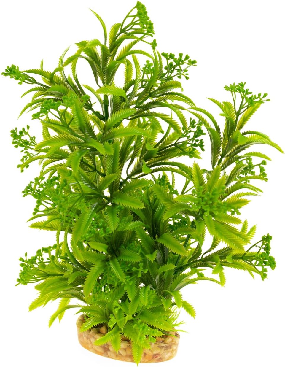 Plant part, made of plastic. Base, made of ceramic. Non-toxic material. Safe for fish.
