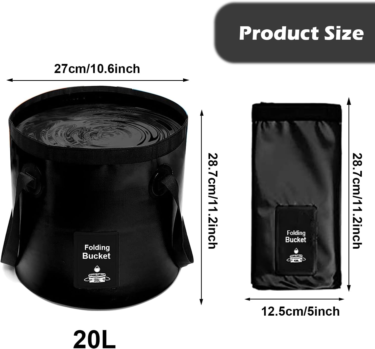 Large Capacity and Space Saving: The foldable bucket has a 20L (5 Gallon) capacity, only weights 0.36 Ib. It opens easily to 10.5″ tall and folds to 4.3″ for compact storage