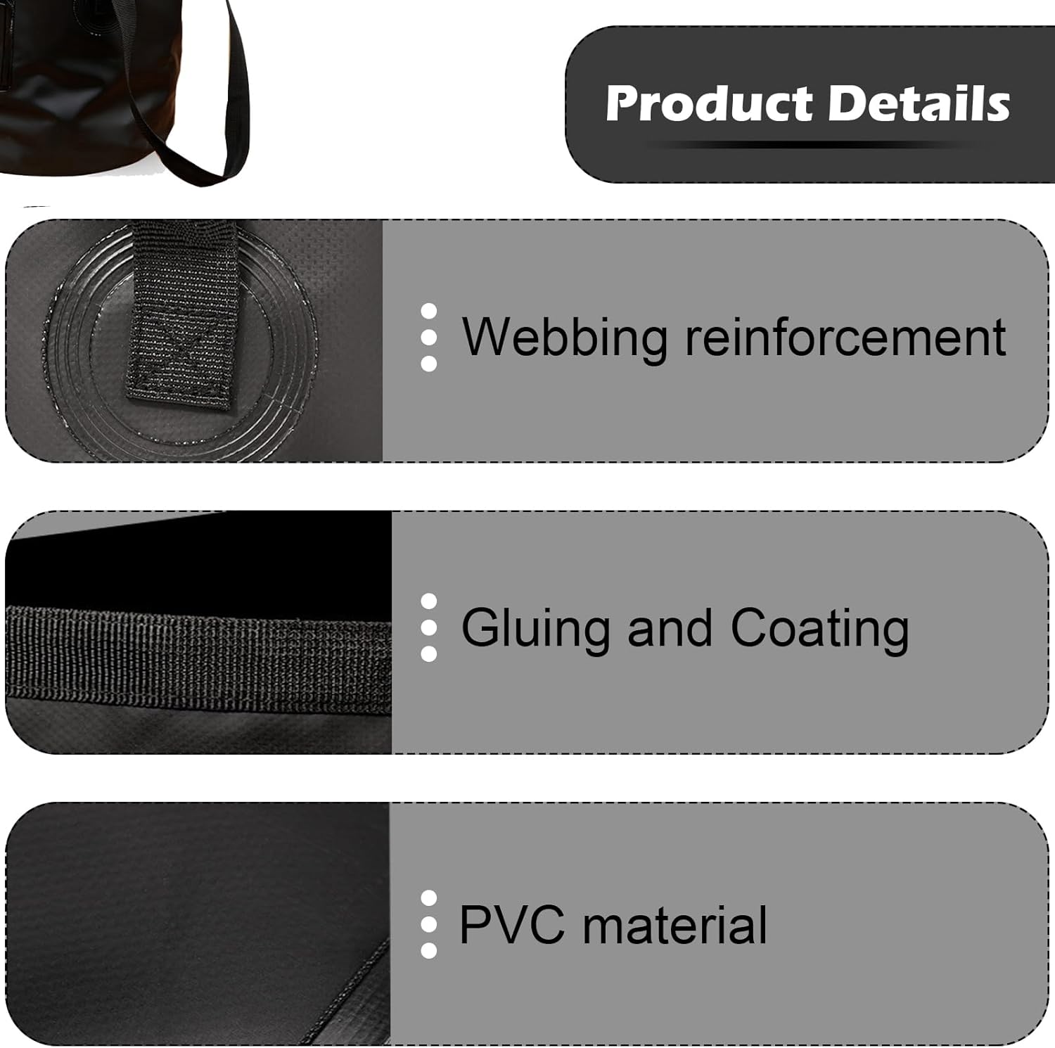 Meterial: Made of 500D PVC Tarpaulin, a durable material with double seamed seams. For your safety and environment, buckets use the environmentally friendly material, does not contain toxins such as BPA and Phthalates