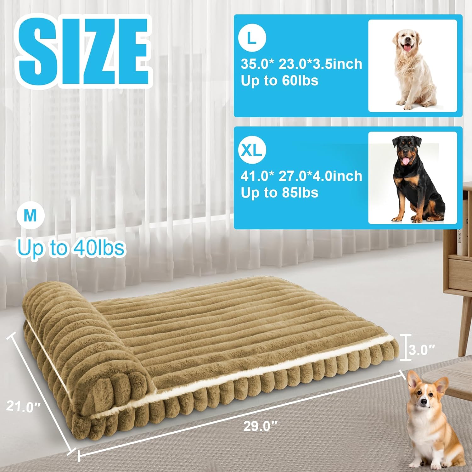 Comfort Dog Beds for Medium Size Dogs, Dog Bed with Removable Washable Cover, Deluxe Plush Dogs Bed for Crate with Pillow, Anti-Slip Pet Mat Mattress for Kennel with Durable Zipper(Brown, M)
