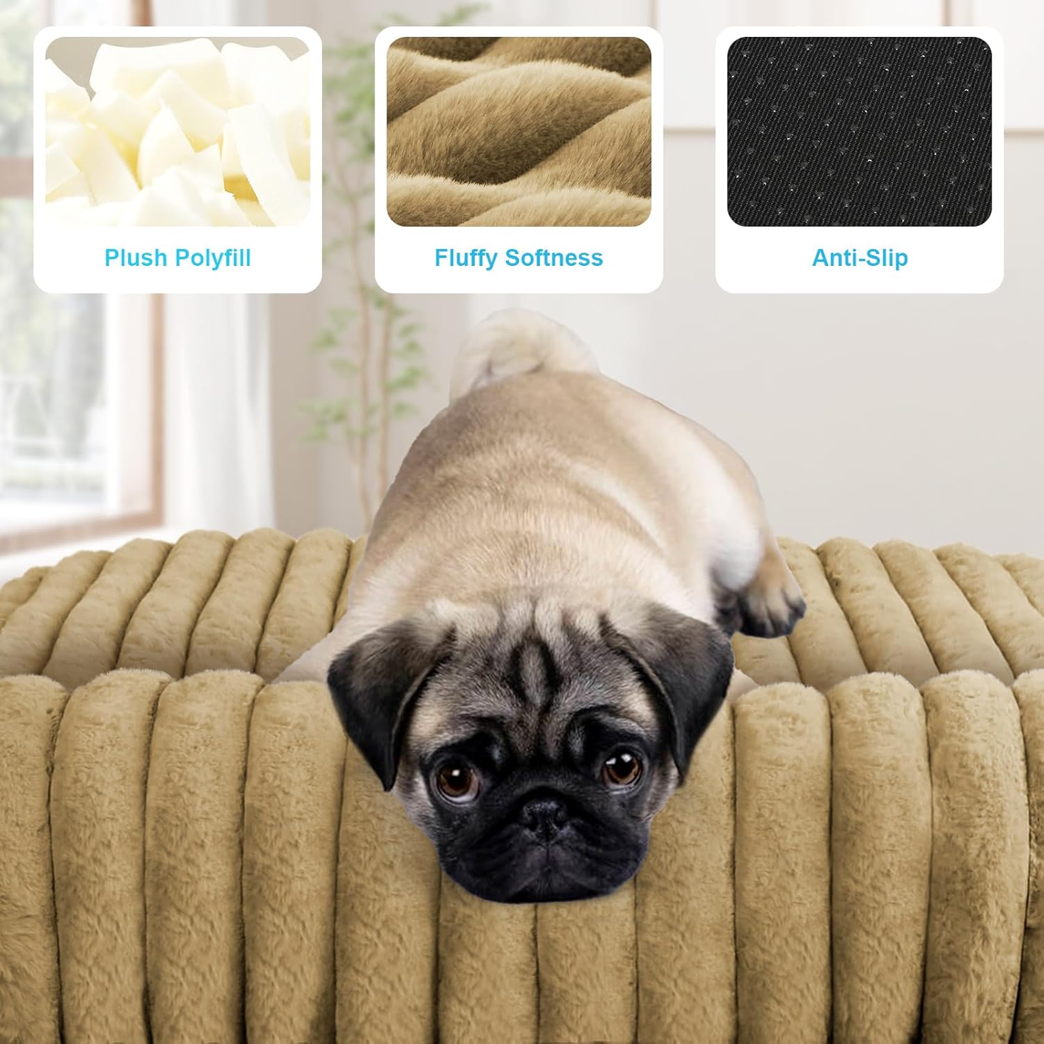 【Stable & Safe Non-Slip Design】This dog crate bed features an advanced anti-slip bottom that stays firmly in place on hardwood floors or tiles, preventing unwanted sliding even during active play. The scratch-resistant base ensures long-lasting stability, giving your pet a secure spot to step on and off with confidence.