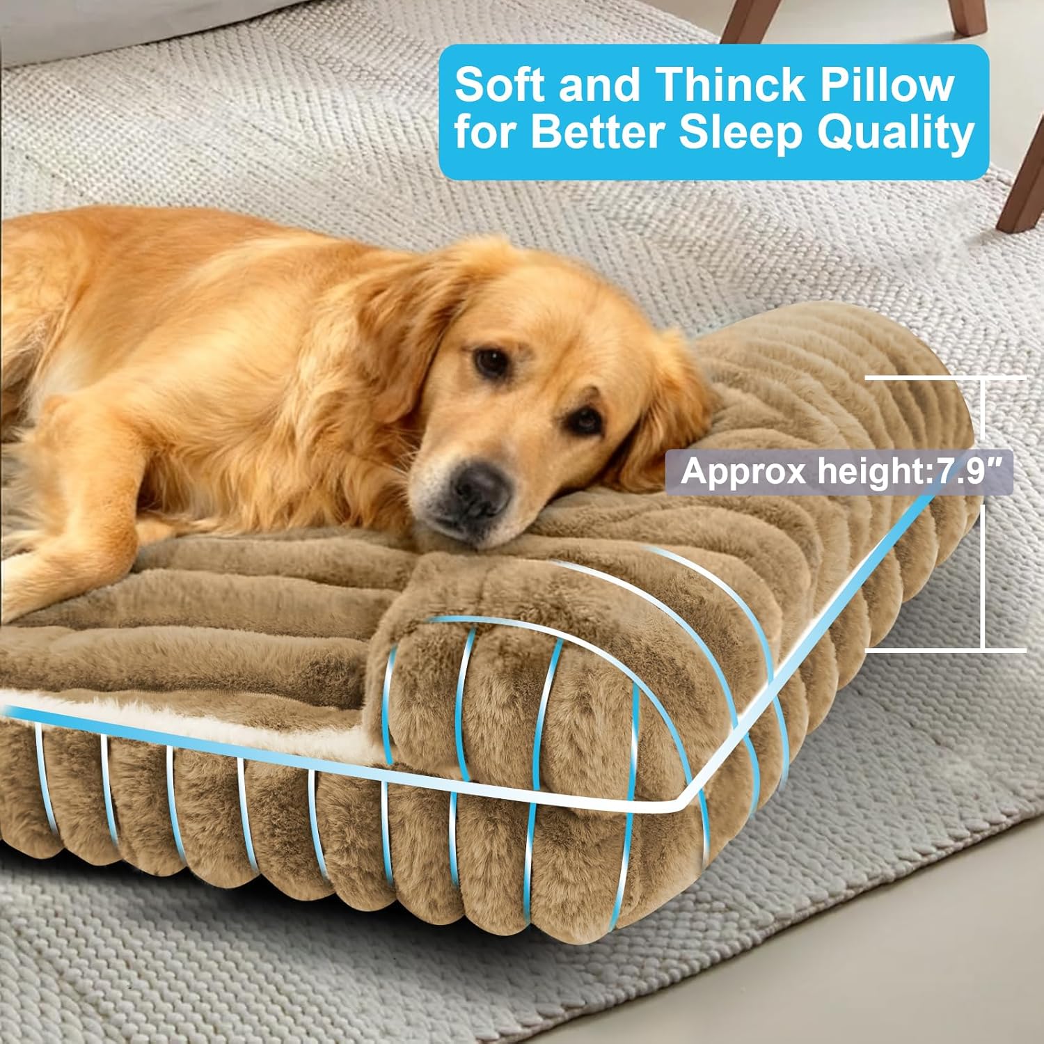 【I-Shaped Dog Bed for Large Dogs】This deluxe plush rectangle dog bed features a unique I-shaped design with Pillow to support your pet’s head, while the open sides provide ample space for stretching. The ultra-soft yet full stuffing helps soothe joints and muscles, promoting deeper relaxation and restorative sleep for large breeds.