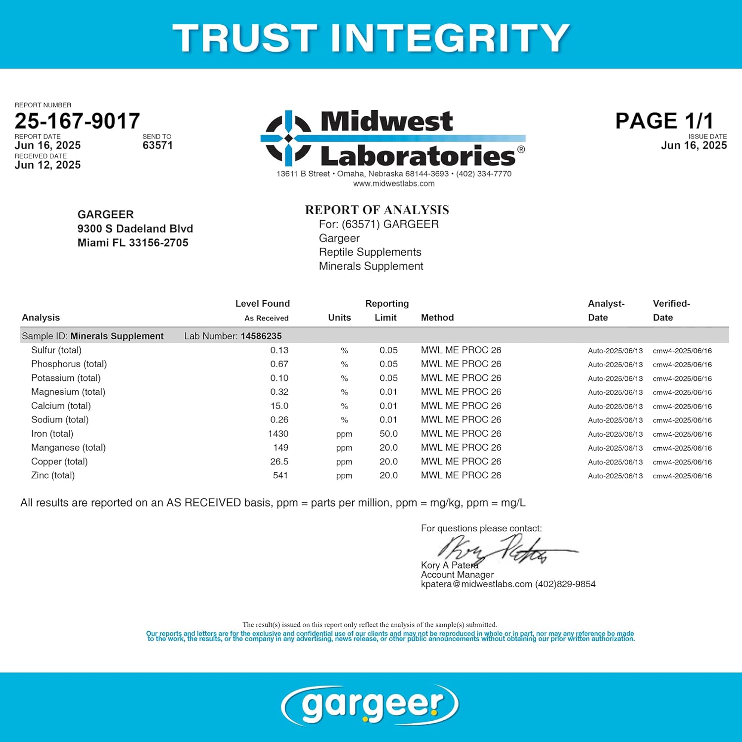 Complete doesn’t begin to describe it. Gargeer’s Complete Mineral Reptile Supplement is a precision-balanced blend of essential calcium and over 9 bioavailable trace minerals, designed to address the specific needs of reptiles raised indoors or on captive diets. Whether you’re feeding leafy greens, feeder insects, or processed diets — most reptile meals lack the full spectrum of micronutrients required for optimal health. That’s where this clean and effective mineral formula comes in. 🦴 For Strong Bones & Healthy Shells With 15% calcium and an ideal calcium-to-phosphorus ratio, this blend helps prevent Metabolic Bone Disease (MBD) and supports shell growth in tortoises and turtles. ________________________________________ 🦎 For Skin, Shedding & Recovery Zinc, vitamin E, and spirulina support smooth, complete shedding and tissue regeneration. Also great for animals recovering from eye issues or skin injuries. ________________________________________ 🔥 For Metabolic & Hormonal Health Natural iodine from kelp fuels the thyroid, aiding energy balance, appetite, and overall metabolism. Mineral clay further boosts digestive health and toxin elimination. ________________________________________ 💚 For Daily Wellness Also contains magnesium, manganese, copper, iron, potassium, selenium, and more — all in highly absorbable forms, ensuring your animal benefits from every pinch. ________________________________________ ✅ How to Use: Herbivores (tortoises, iguanas): 2 pinches per 50g leafy greens, twice weekly Insectivores/omnivores (geckos, dragons): 1 pinch per 10g feeder insects, once weekly Carnivores (snakes, monitors eating processed meat): 2 pinches per 50g, twice weekly Not needed for whole prey diets. ⚠️ Important Do not use with other mineral products on the same day Consult a vet before use in animals with diagnosed deficiencies ________________________________________ Why Gargeer? 📦 3 oz resealable pouch 🇺🇸 Made in the USA 🧬 Formulated by a herpetologist with 25+ years of experience 🌿 Made with locally sourced ingredients Gargeer Complete Mineral Reptile Supplement — because full health needs full nutrition.