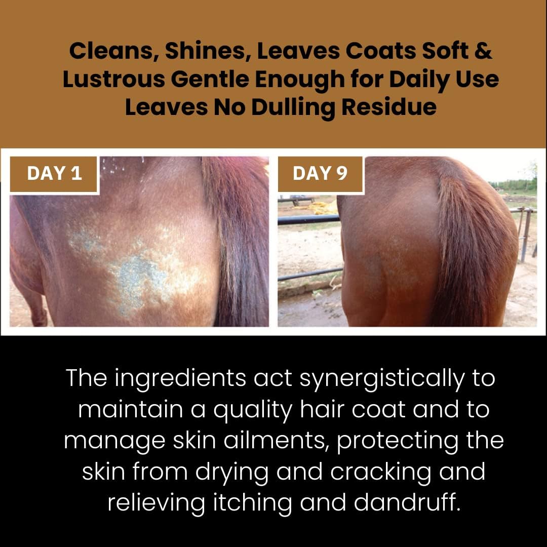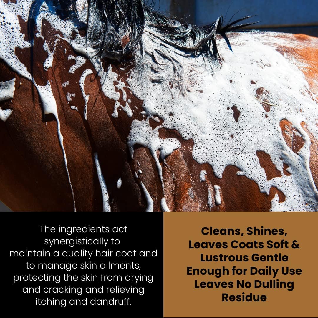Helps clean and add shine to the hair coat while managing skin ailments; It protects the skin from drying and cracking and relieves itching and dandruff