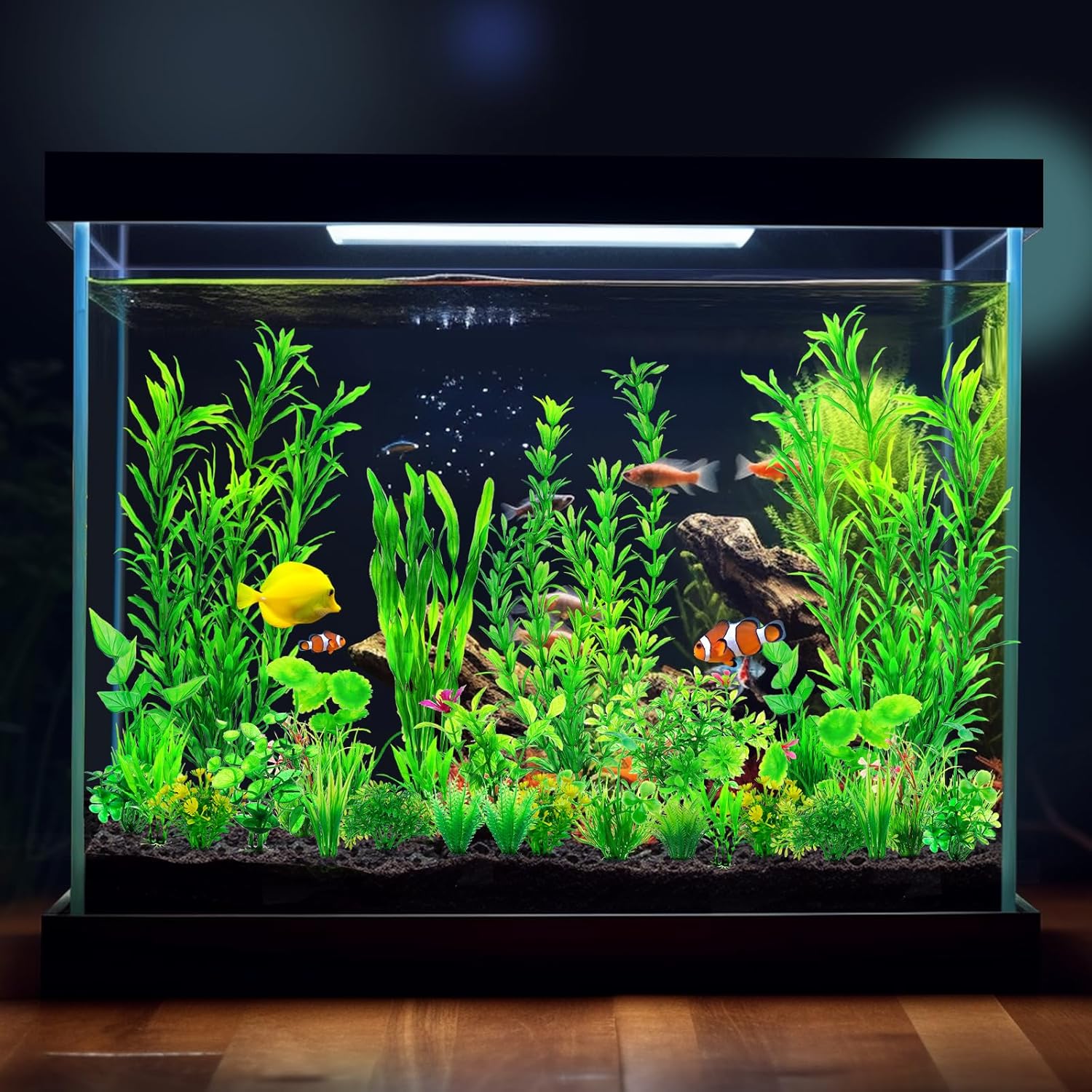 This bundle of aquatic plants was a solid purchase for my 10 gallon tank! The material of the plants are soft & smooth! Weighted bottoms so they don’t float! More than enough pieces to choose from & switch out for different looks! I’m a minimalist so I couldn’t bring myself to pack all the plants in my tank! The colors are so vibrant, bringing another element of beauty to my tank! Great quality all around!! Another awesome purchase!