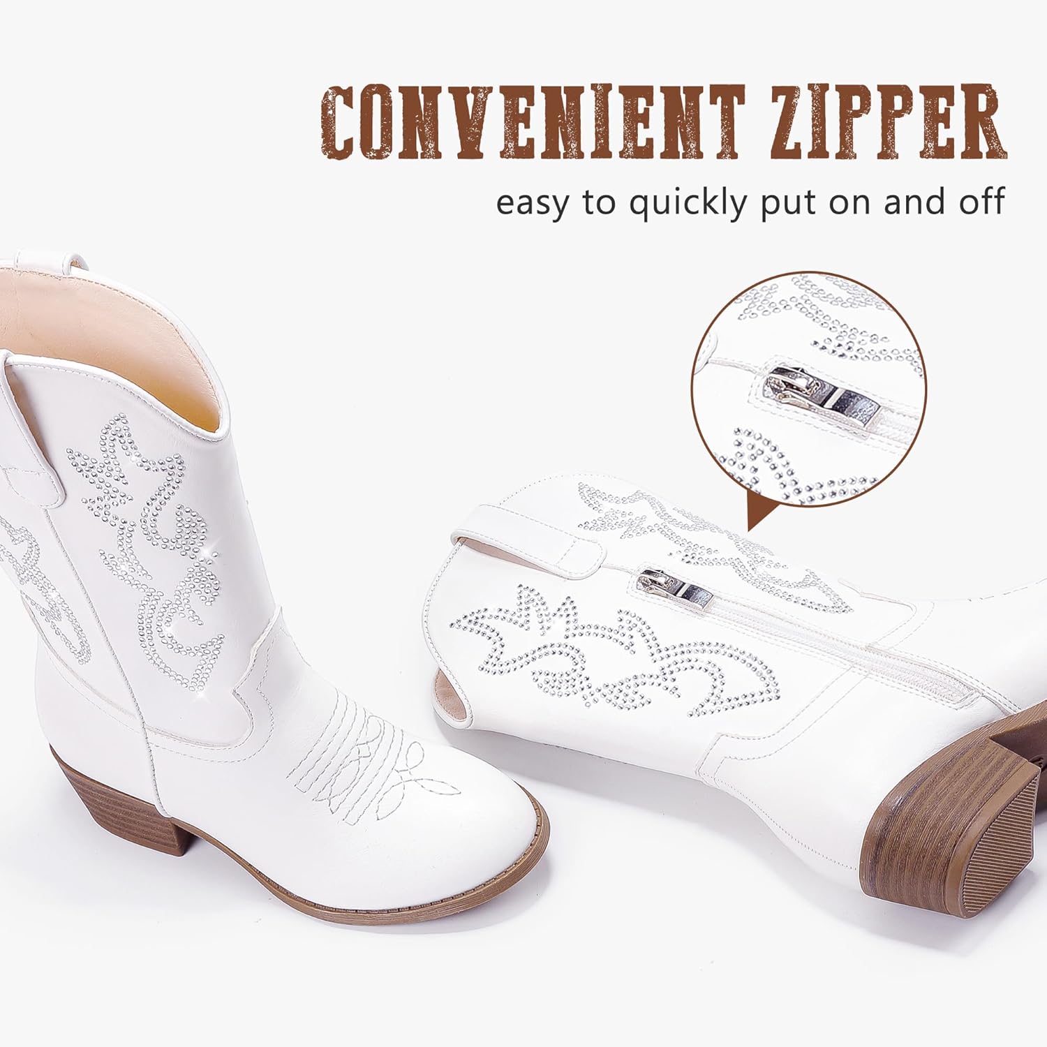Customers find these cowgirl boots to be well-made and comfortable, with a perfect fit and true-to-size measurements. They appreciate the style, with one customer noting they’re a great addition to dance outfits, and consider them worth the price. However, the durability receives mixed reviews, with several customers reporting that the gemstones fall off.